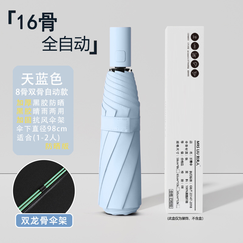 • [자동 8 뼈] 16 가닥 방풍 우산 뼈 블랙 접착제 앞으로-스카이 블루