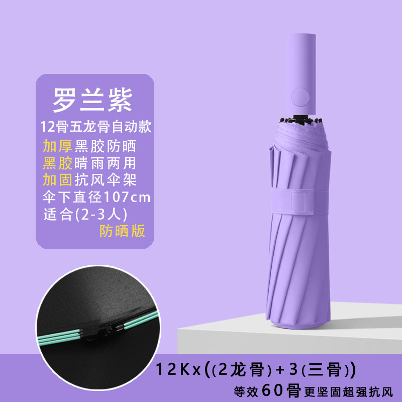 • [자동 12 뼈] 60 가닥 섬유 폭풍 방지 우산 뼈 보라색