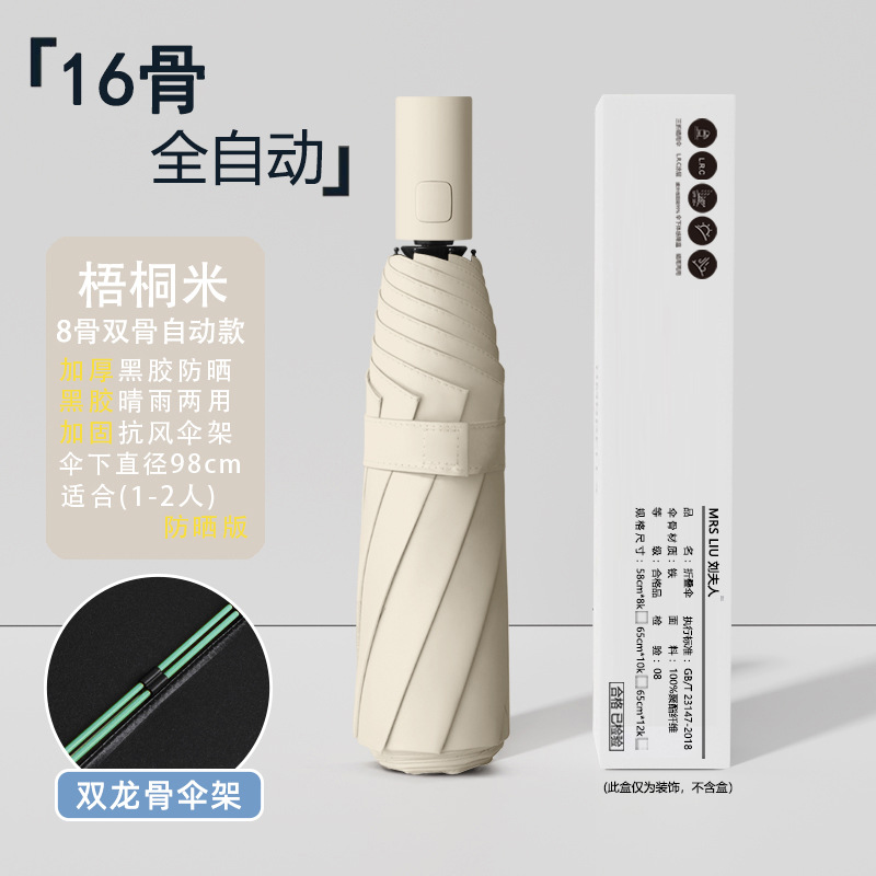 • [자동 8 뼈] 16 가닥 방풍 우산 뼈 블랙 접착제 앞으로-Sycamore Rice
