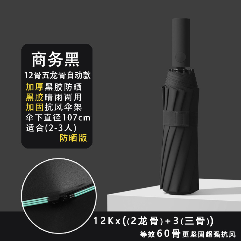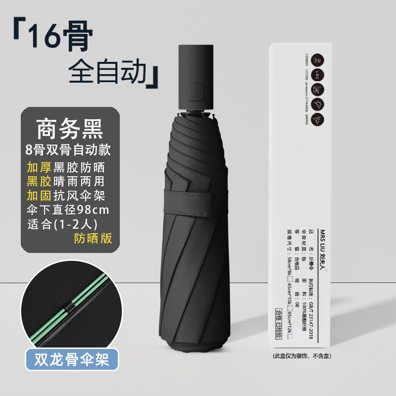 • [자동 8 뼈] 16 가닥 방풍 우산 뼈 블랙 접착제 앞으로-클래식 블랙