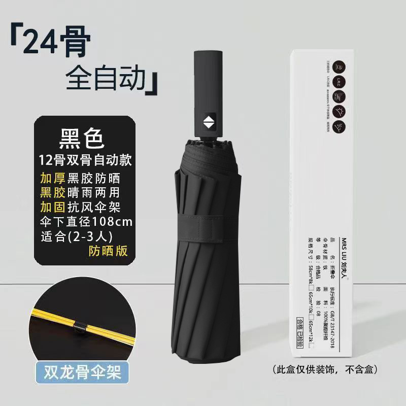 • [자동 12 뼈] 24 뼈 강화 섬유 블랙 접착제 ☆ 맑고 비 듀얼 사용-클래식 블랙
