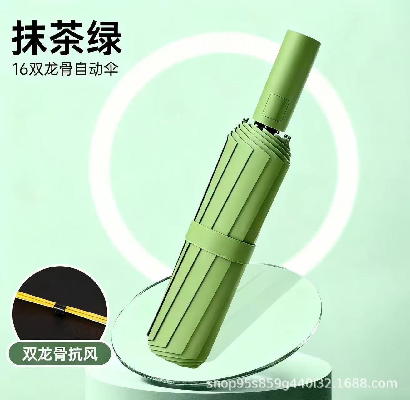 • [자동 8리브] 16가닥 방풍우산 리브 블랙 글루 포워드 스타일 - 말차 그린