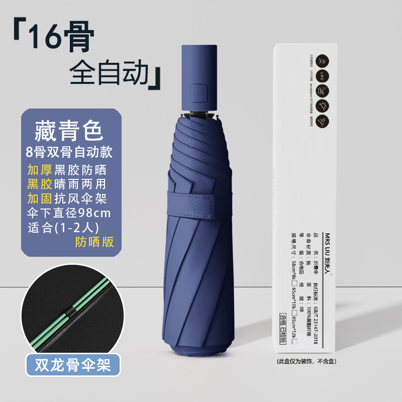 • [자동 8 뼈] 16 가닥 방풍 우산 뼈 검은 접착제 앞으로-네이비