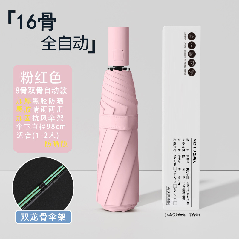 • [자동 8 뼈] 16 가닥 방풍 우산 뼈 검은 접착제 앞으로-핑크