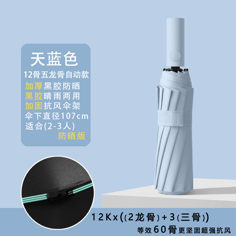 • [자동 12 뼈] 24 가닥 강화 섬유 블랙 접착제 ☆ 맑고 비 이중 사용-스카이 블루