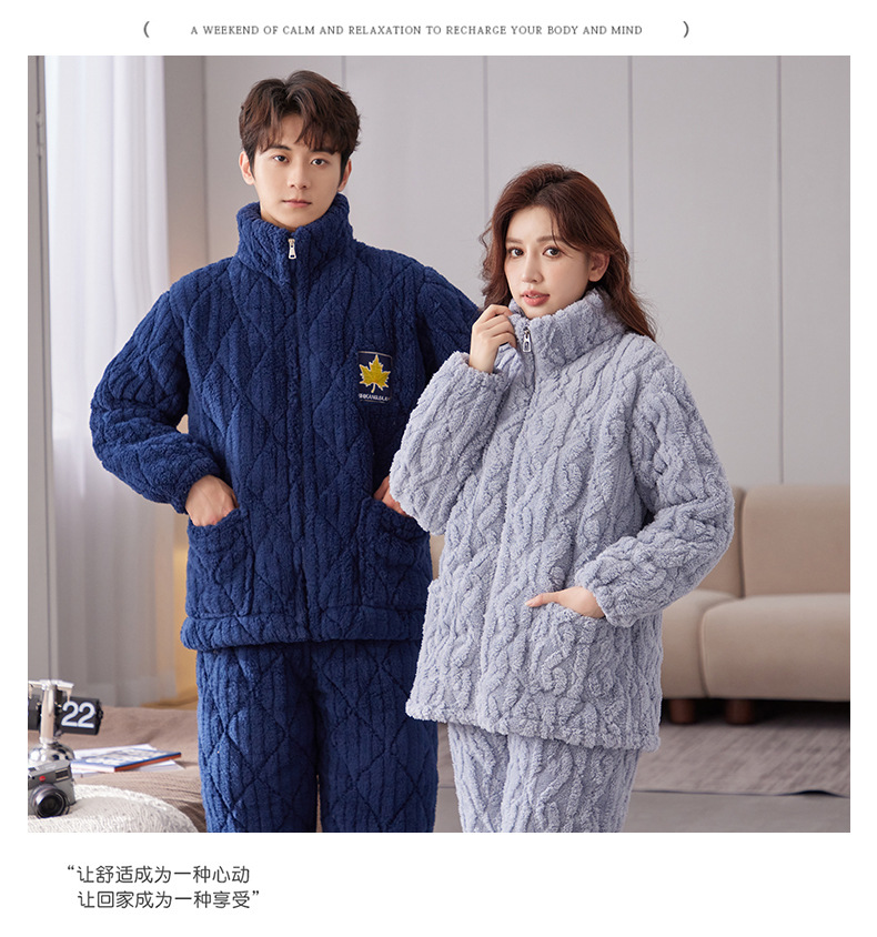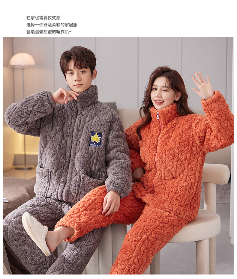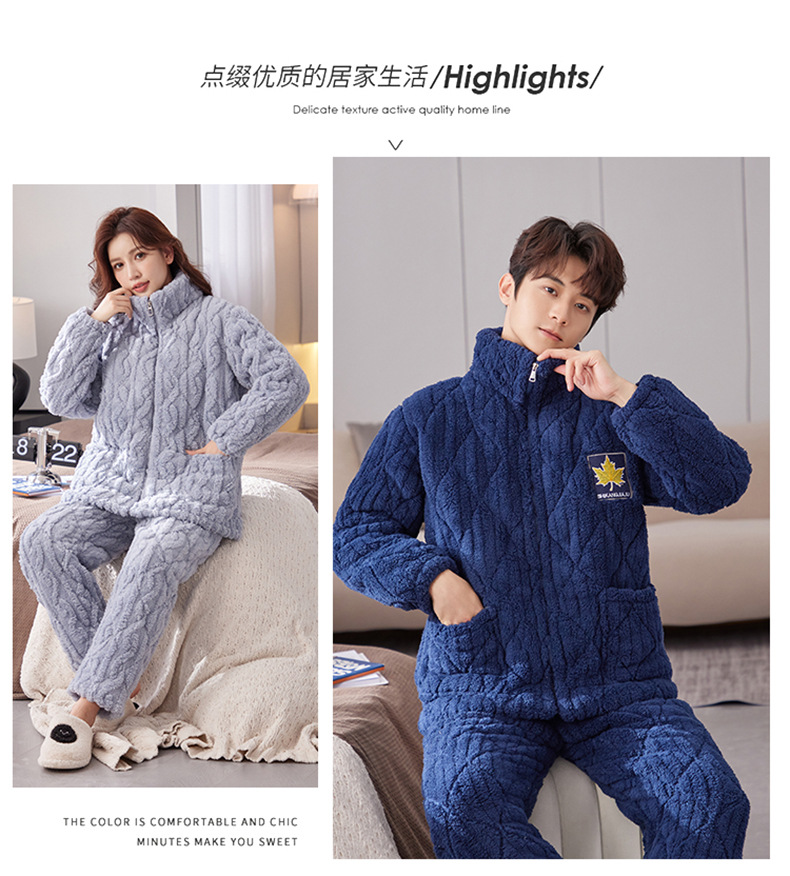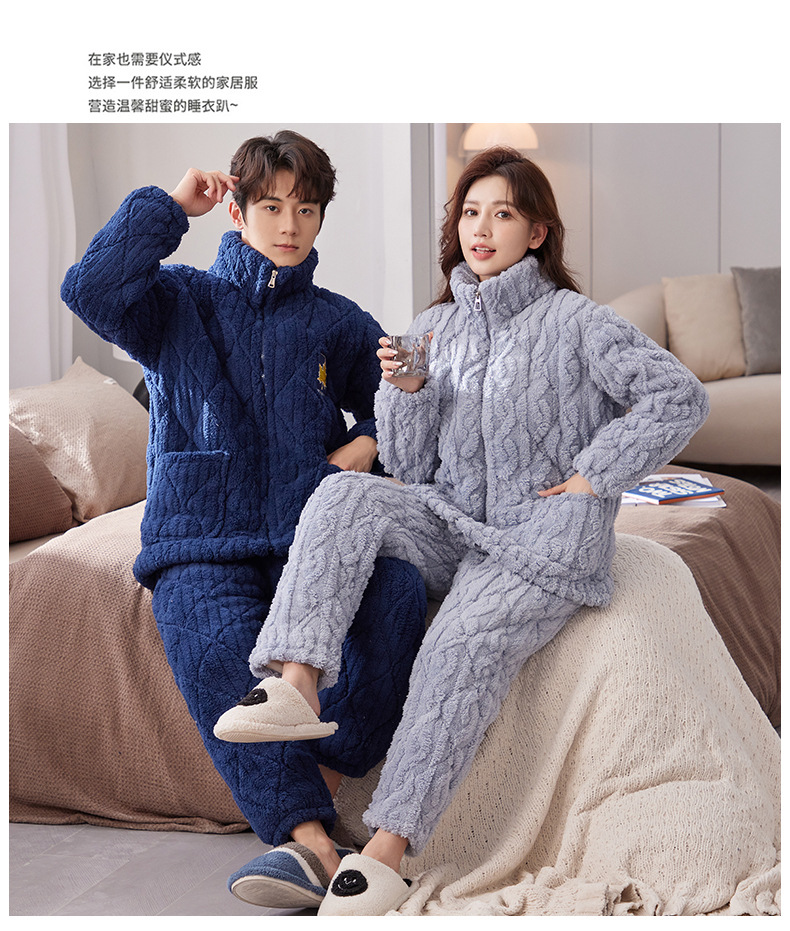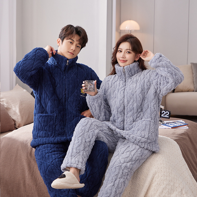 잠옷 남자의 겨울 두꺼운 기모 3 층 면화 재킷 세트 겨울 플란넬 여성용 따뜻한 집 옷스토어 가기