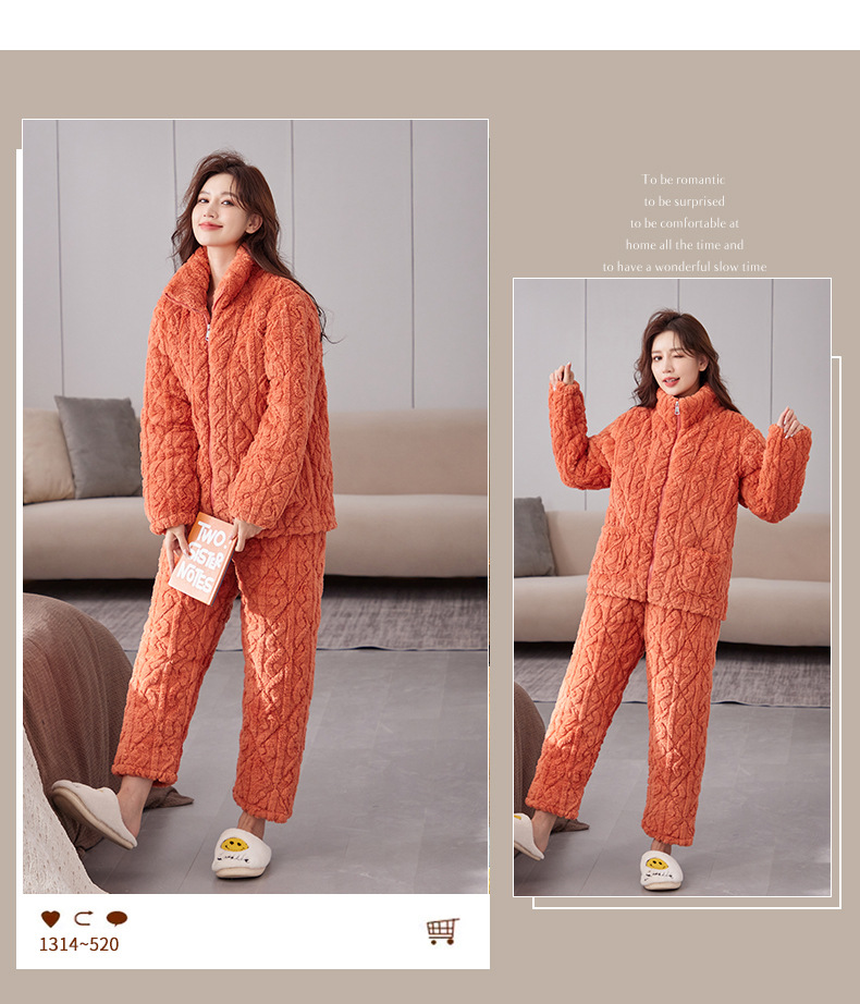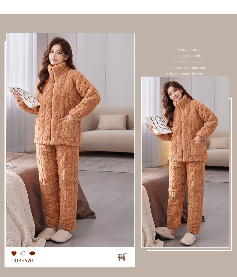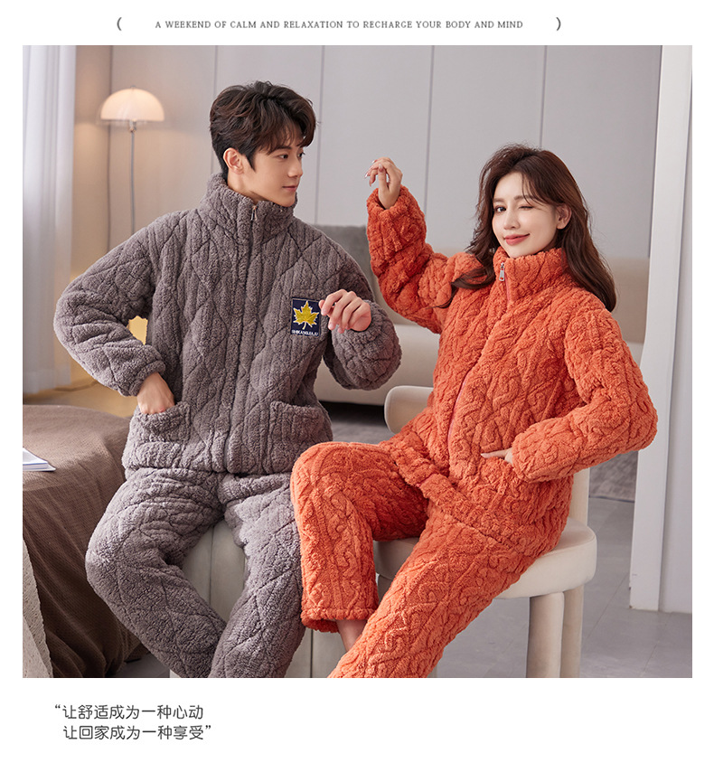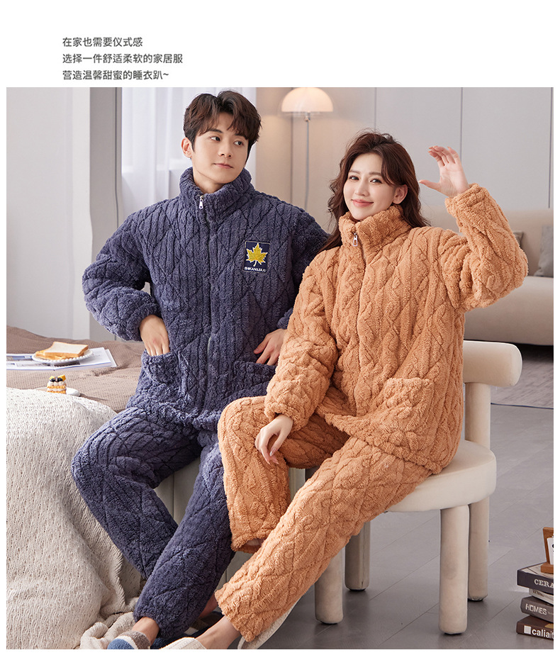 잠옷 남자의 겨울 두꺼운 기모 3 층 면화 재킷 세트 겨울 플란넬 여성용 따뜻한 집 옷스토어 가기