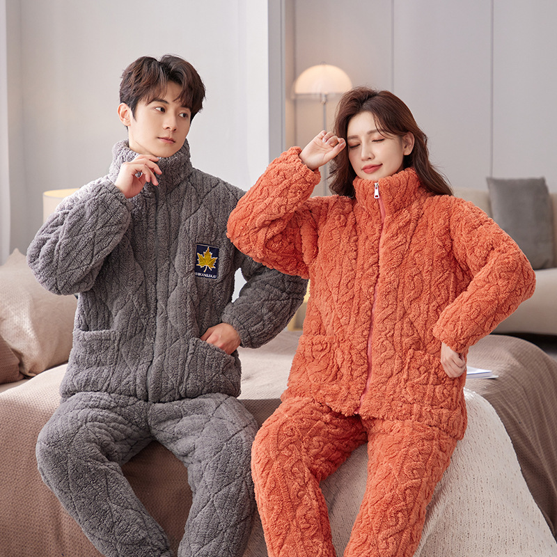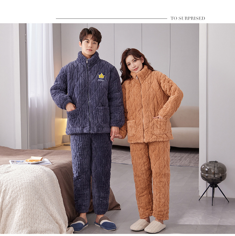 잠옷 남자의 겨울 두꺼운 기모 3 층 면화 재킷 세트 겨울 플란넬 여성용 따뜻한 집 옷