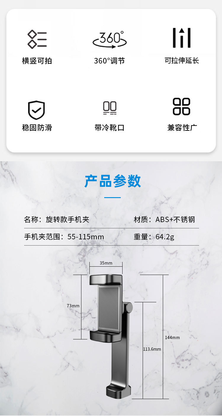 휴대폰 클립 콜드슈 마운트 1/4 라이브 방송 셀카 촬영 삼각대 스탠드 고정 클립 액세서리 다각도 조절