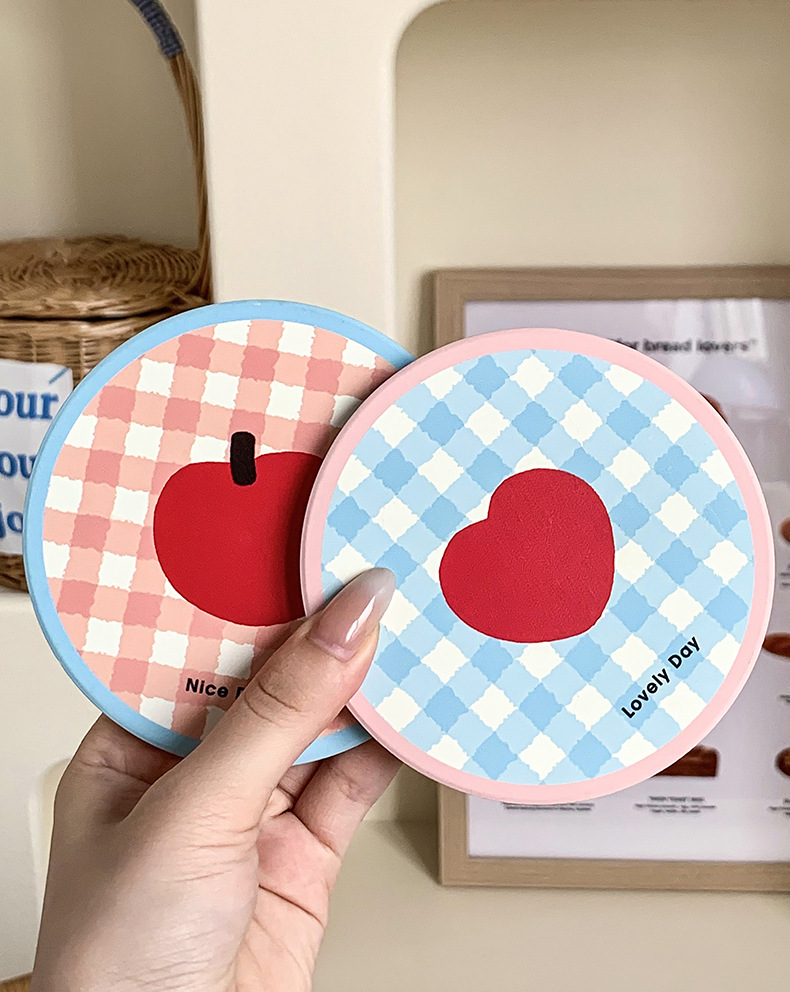 • 피크닉 강아지 10cm 코스터 핑크 애플