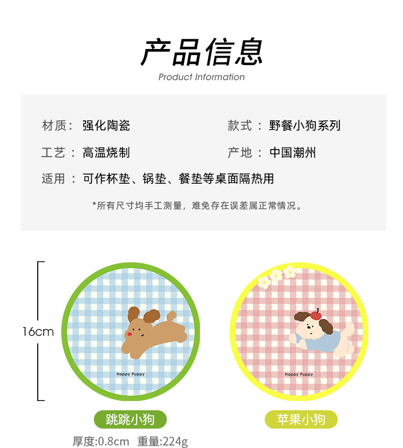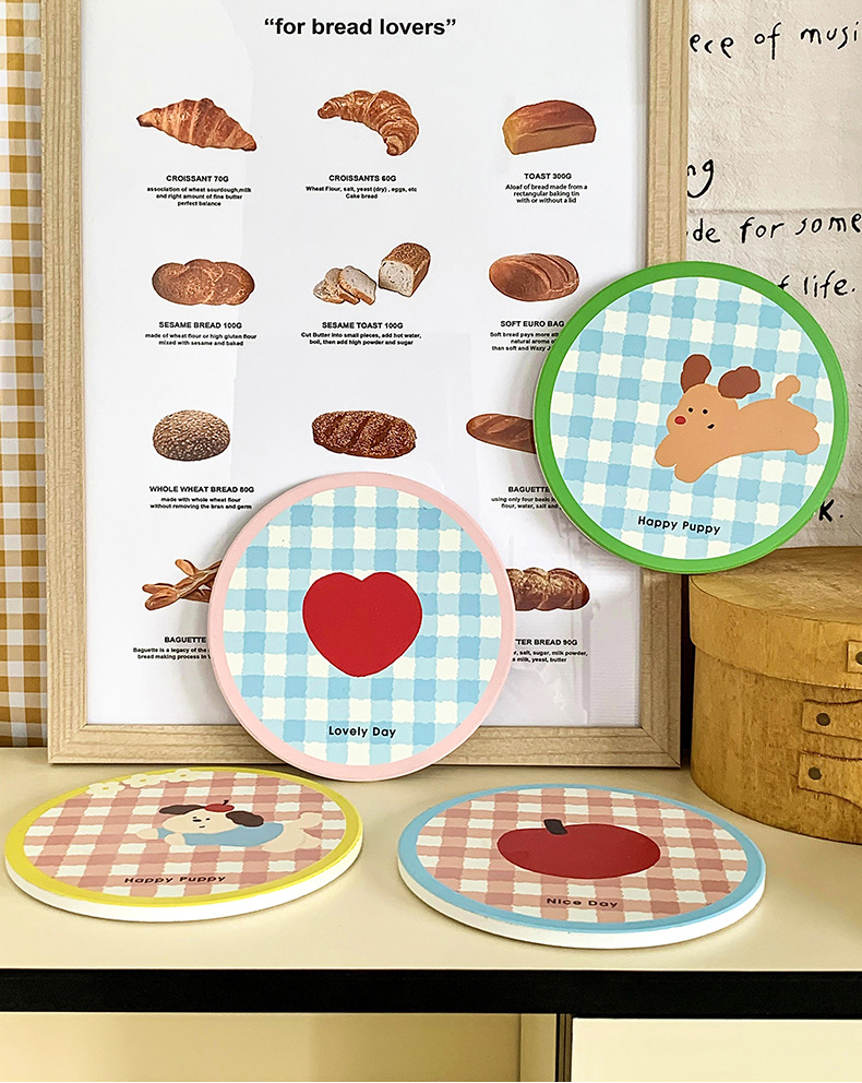 피크닉 강아지 시리즈 Placemat 단열 패드 세라믹 그릇 플레이트 코스터 인 바람 흡수 패드스토어 가기