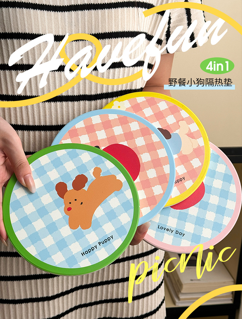 피크닉 강아지 시리즈 Placemat 단열 패드 세라믹 그릇 플레이트 코스터 인 바람 흡수 패드