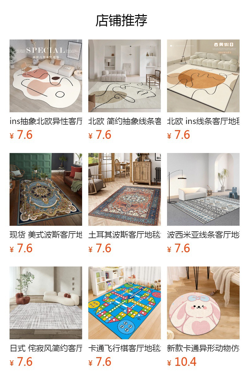 특수 모양의 가벼운 럭셔리 캐시미어 카펫 소프트 미끄럼 방지 거실 대형 소파 커피 테이블 매트 점진적 매트스토어 가기