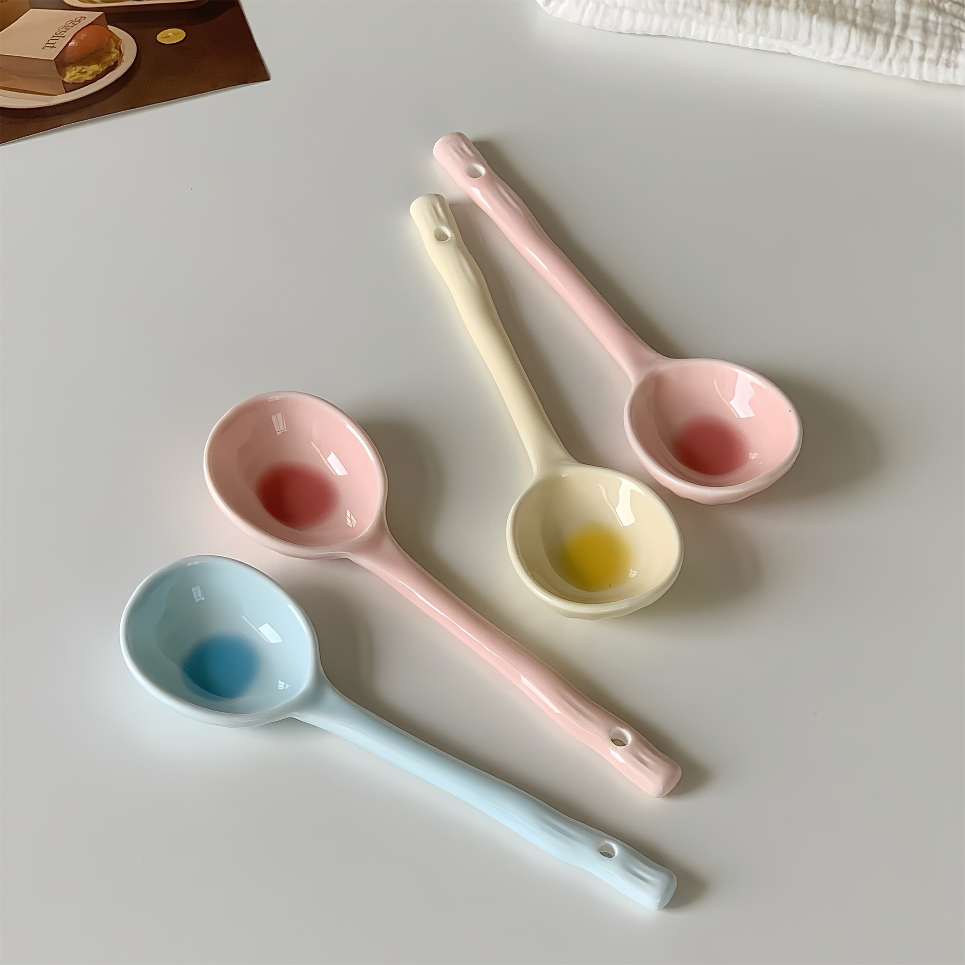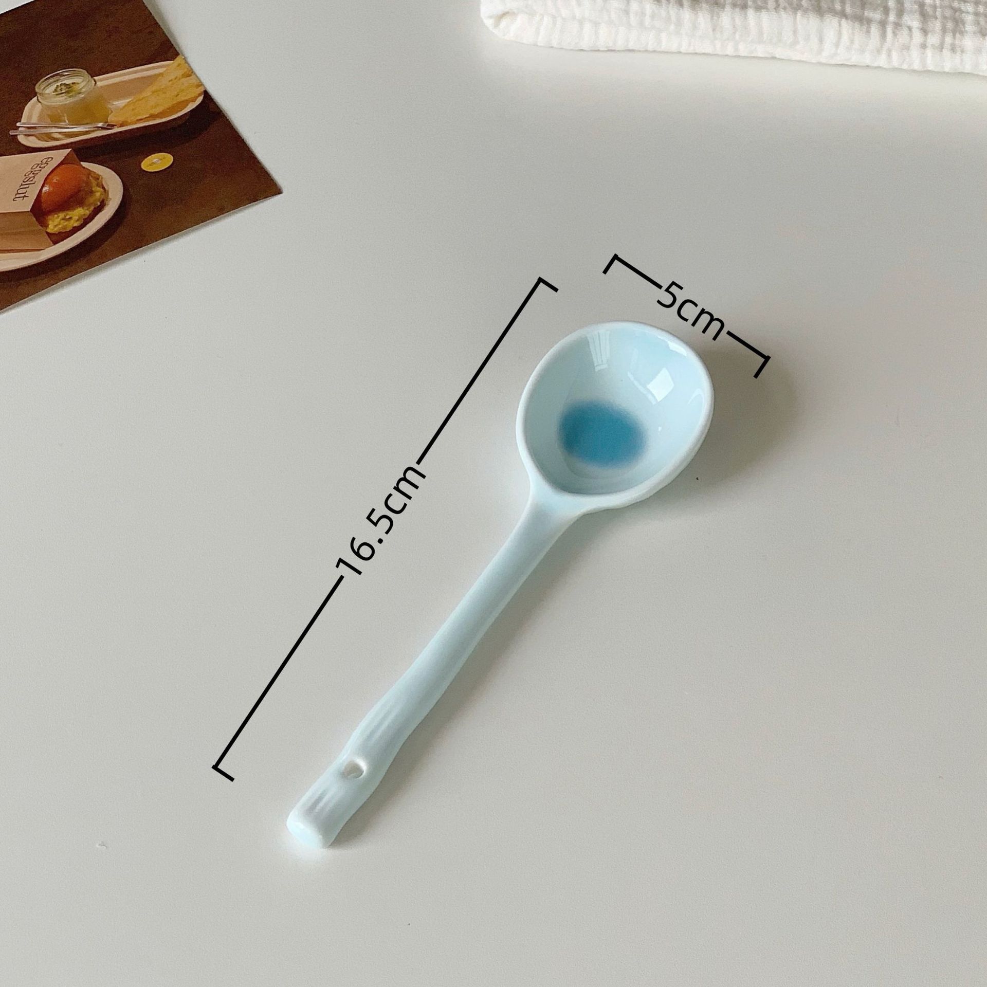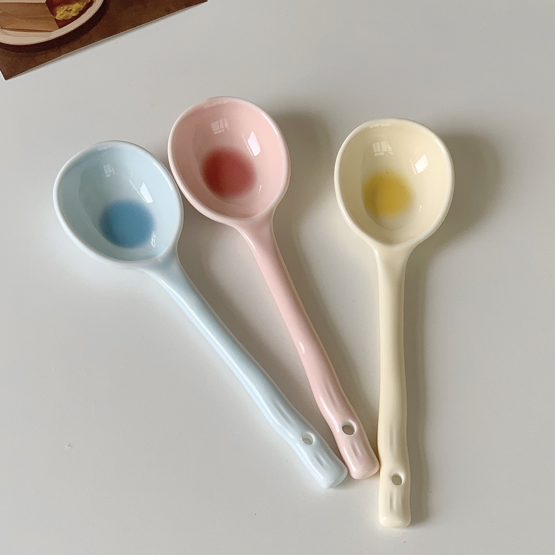 Ins 스타일 세라믹 스푼 가정용 높은 색상 값 긴 핸들 스푼 스푼 귀여운 디저트 스푼 오트밀 요구르트 혼합 스푼