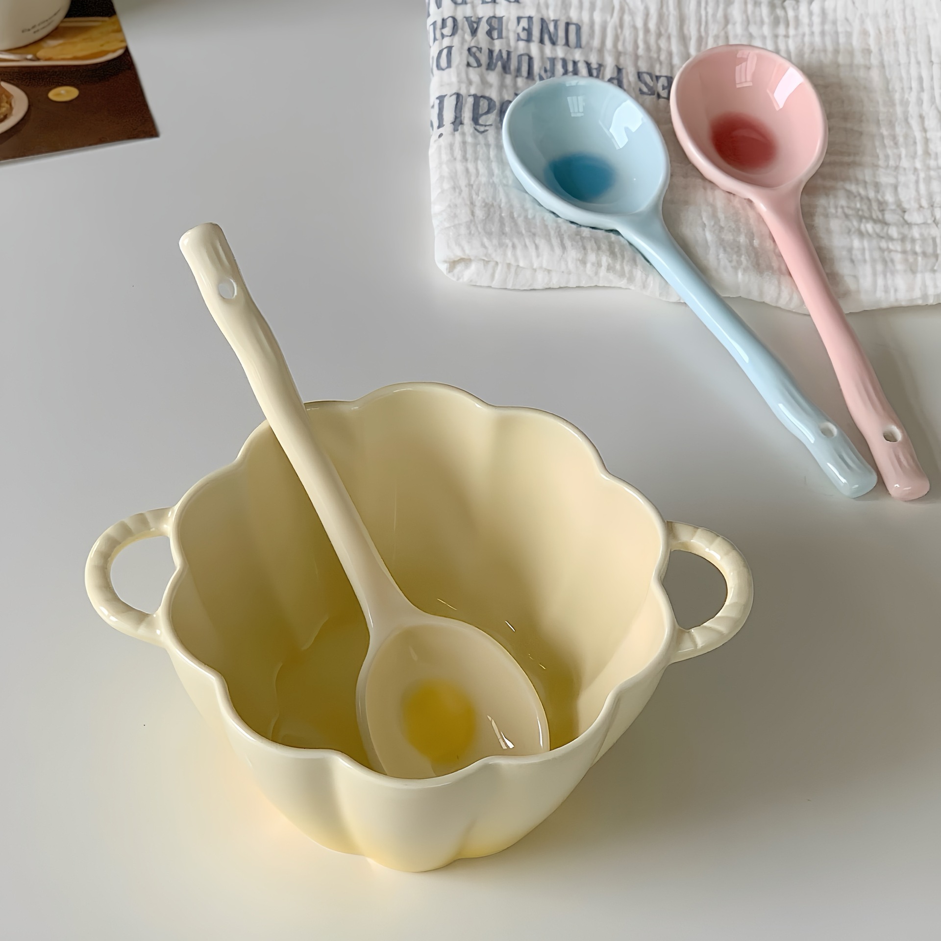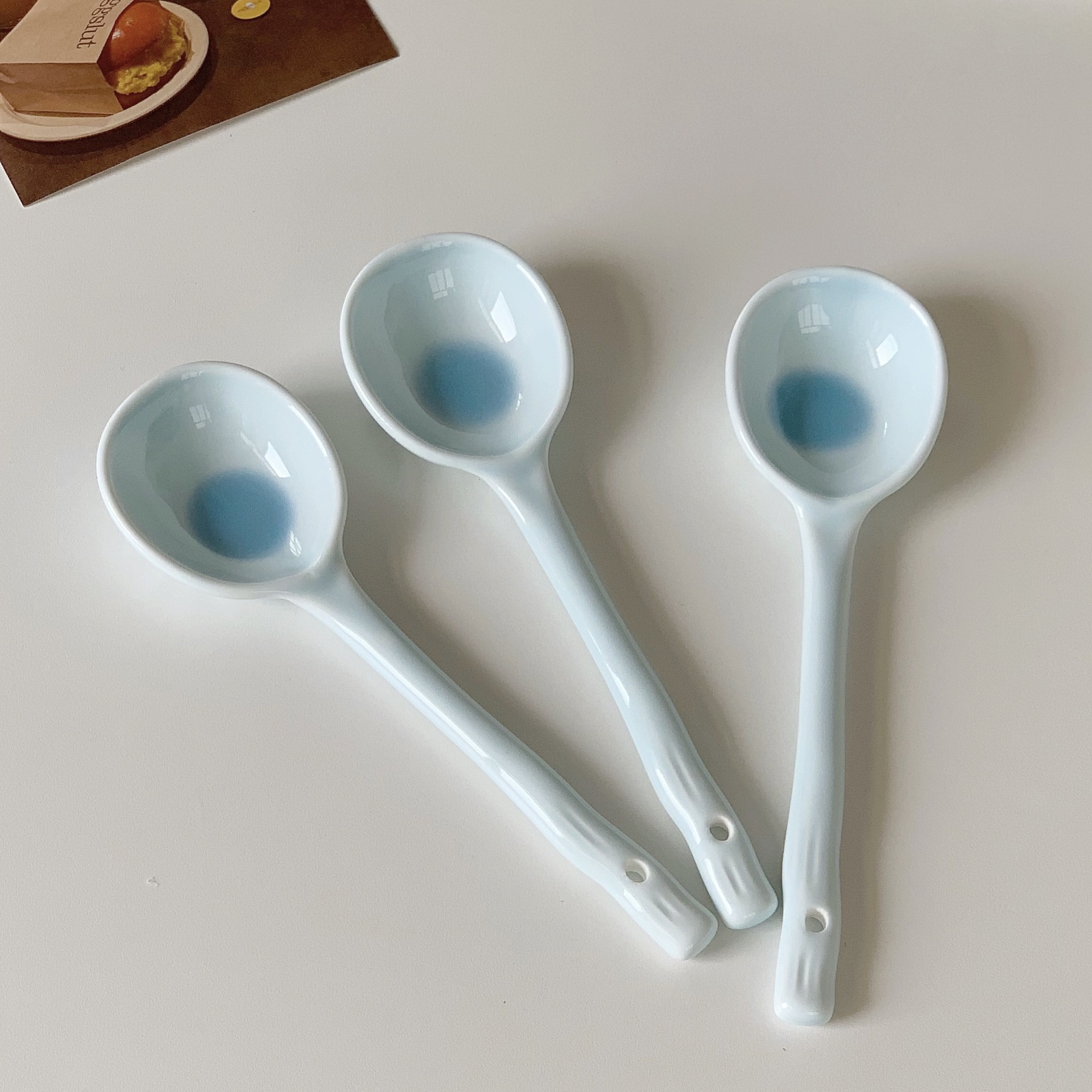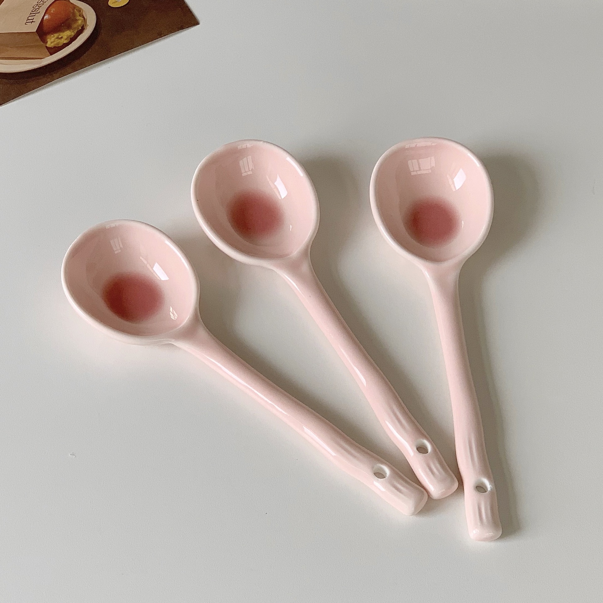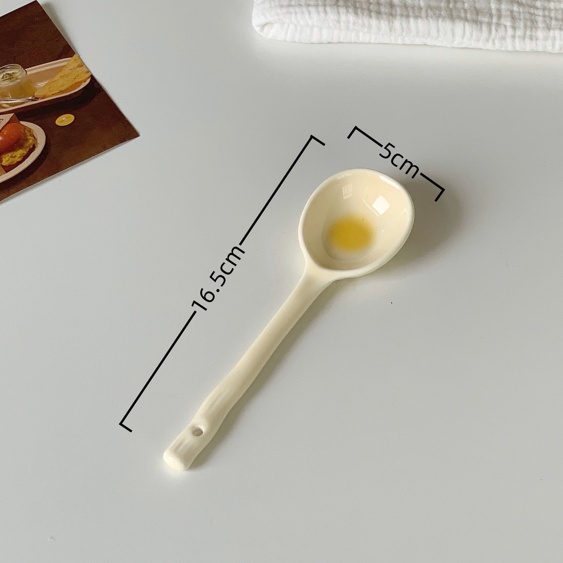 Ins 스타일 세라믹 스푼 가정용 높은 색상 값 긴 핸들 스푼 스푼 귀여운 디저트 스푼 오트밀 요구르트 혼합 스푼