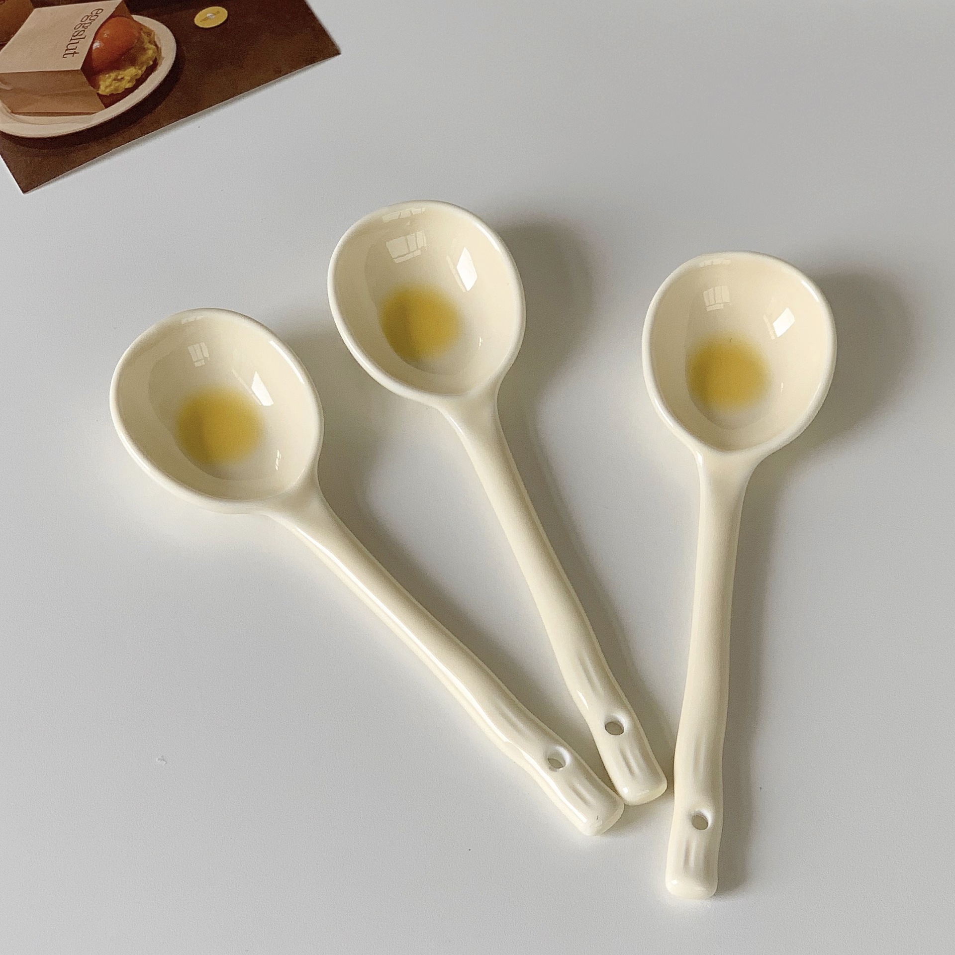 Ins 스타일 세라믹 스푼 가정용 높은 색상 값 긴 핸들 스푼 스푼 귀여운 디저트 스푼 오트밀 요구르트 혼합 스푼스토어 가기