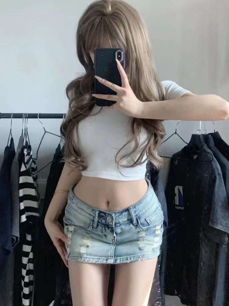 미국 스타일의 뜨거운 소녀 튀긴 거리 미니 스커트 여성의 2024 여름 새로운 데님 반바지 낮은 허리 섹시한 단어 가방 스커트
