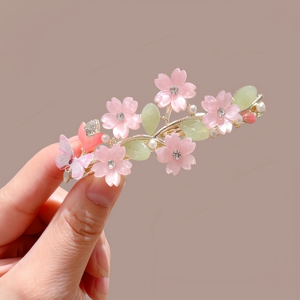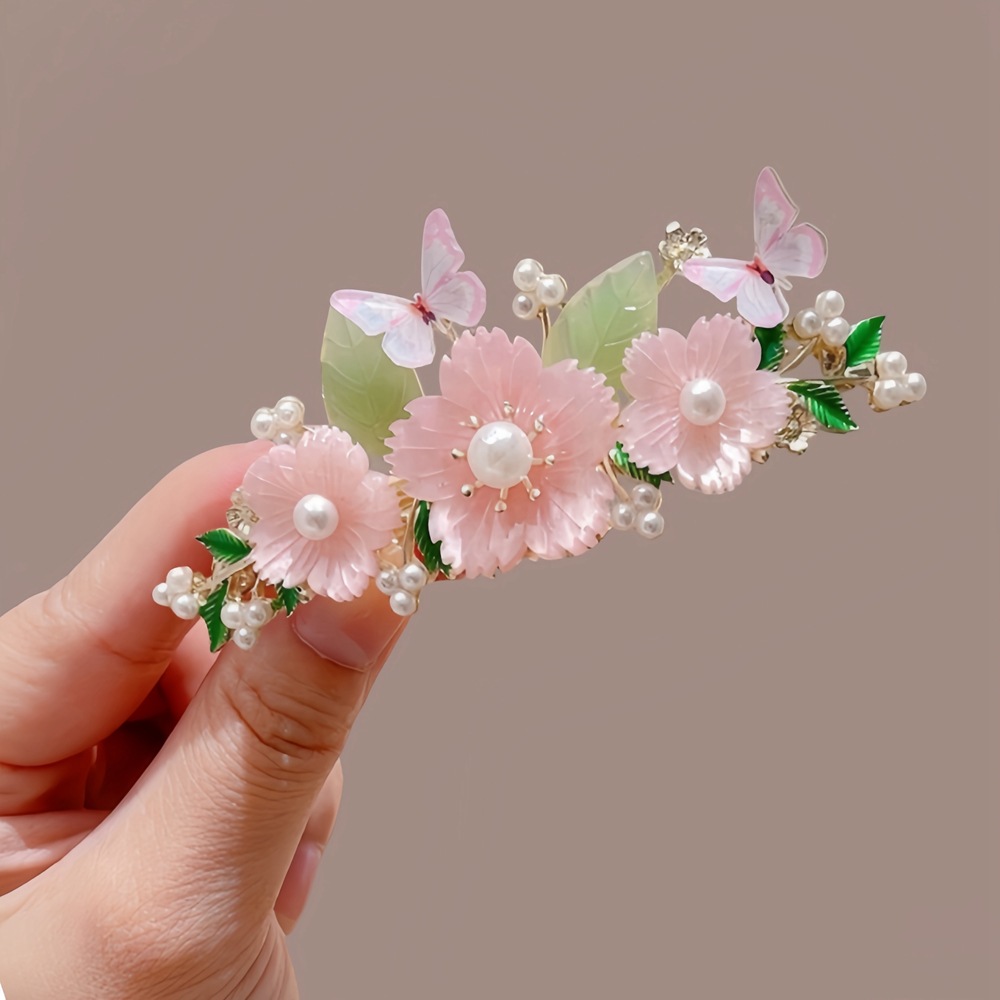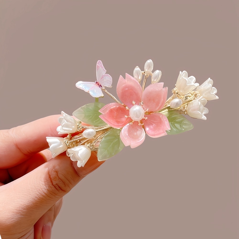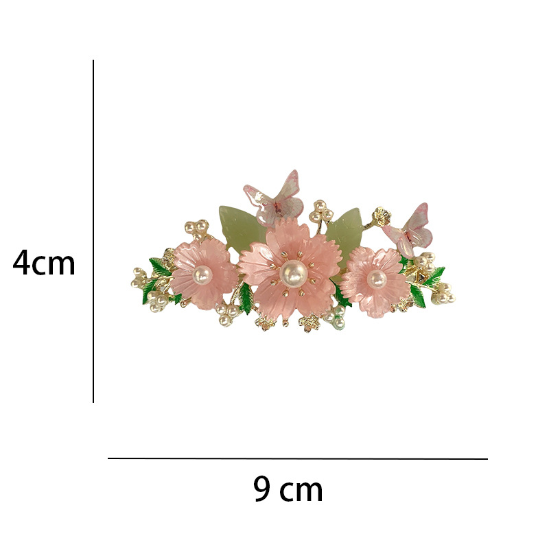 초고급스러운 꽃과 나비 레트로 헤어핀, 고풍스러운 우아한 리본 스프링 클립, 한복과 치파오용 머리 장식