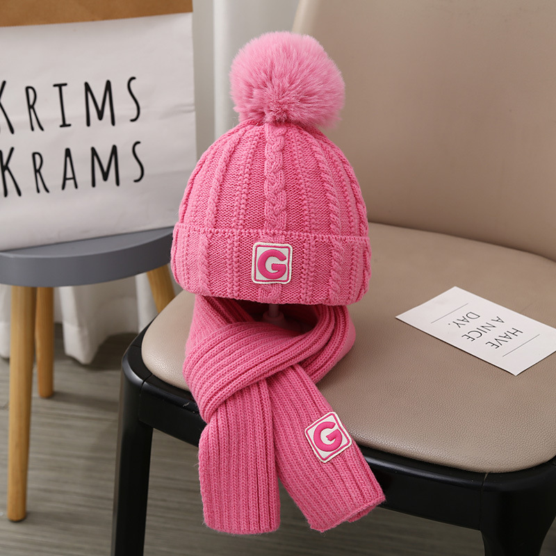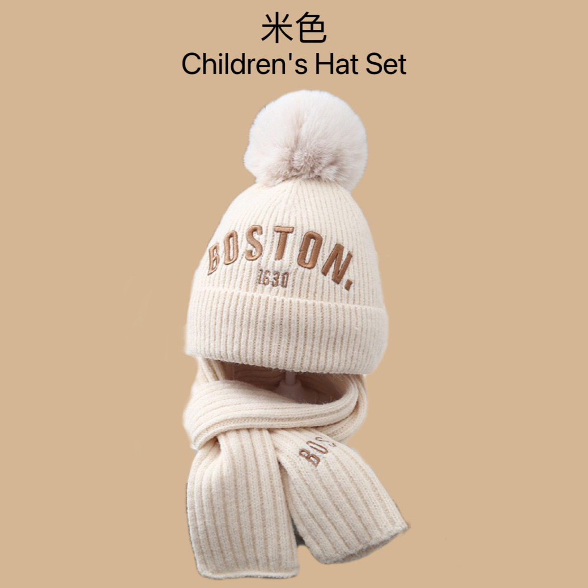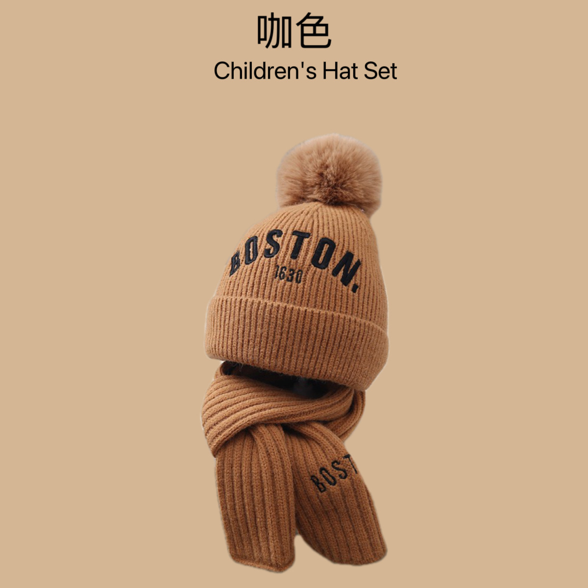 한국의 새 어린이 모자 세트 스카프 투피스 세트 소년 니트 모자 기모 두꺼운 소녀 모자 겨울스토어 가기