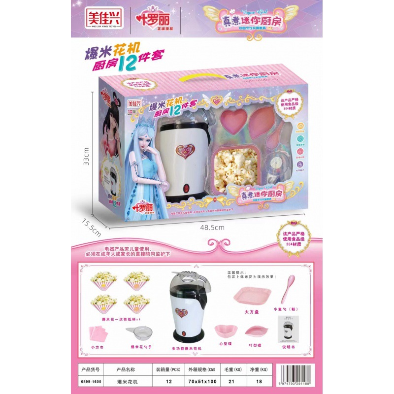 정품 공인 Ye Luoli 진정한 요리 주방 면 사탕 기계 팝콘 기계 놀이 장난감 소녀 교육 장난감스토어 가기