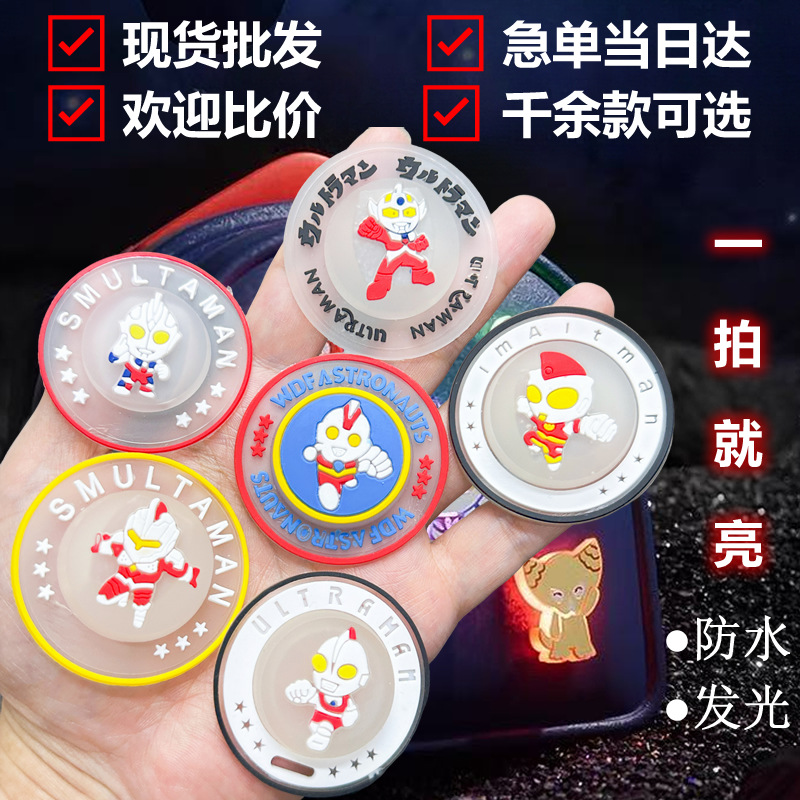 핫세일 가방 액세서리 장식품 남아용 울트라맨 터치하면 불빛나는 고무 플라스틱 플래시 라이트 케이스 재미있는 라벨스토어 가기
