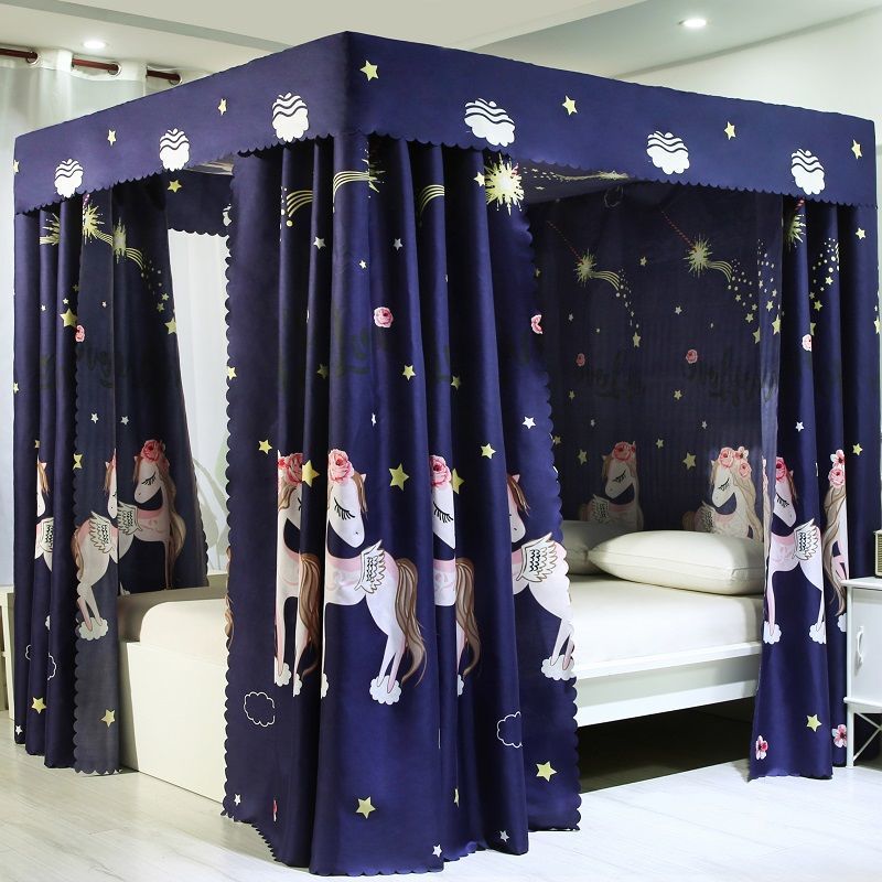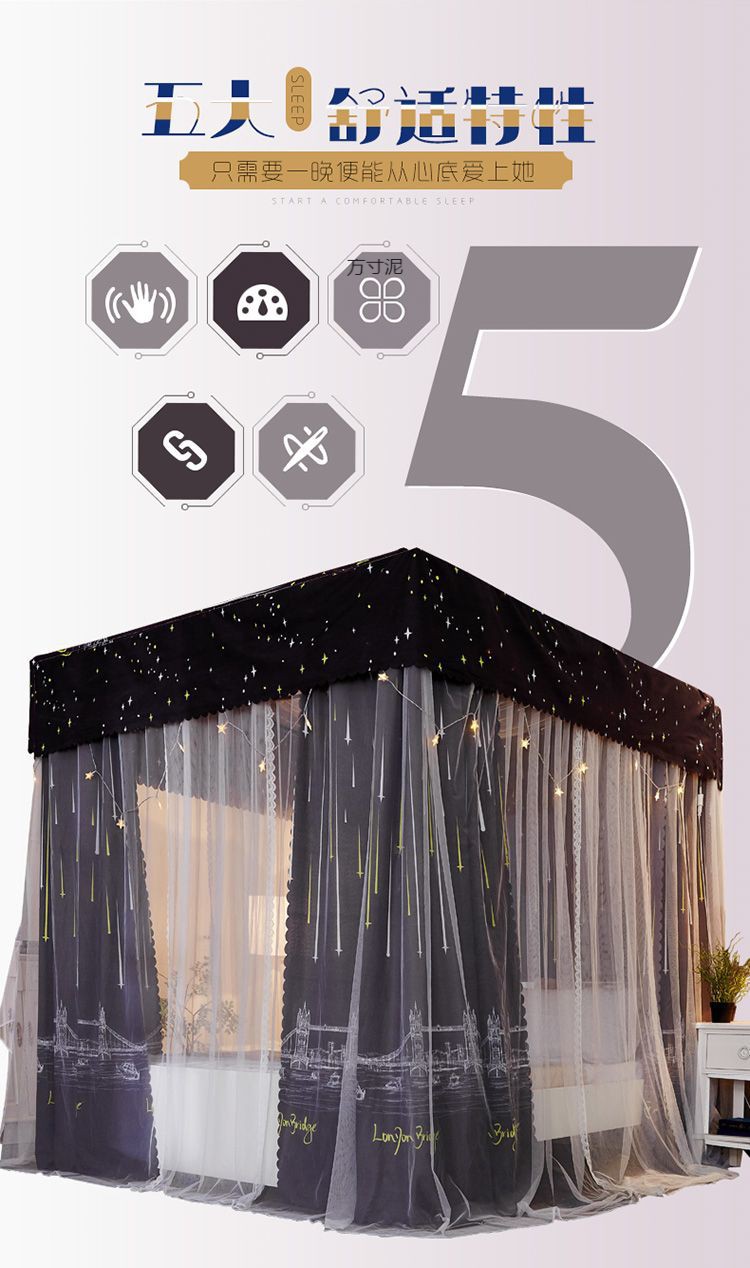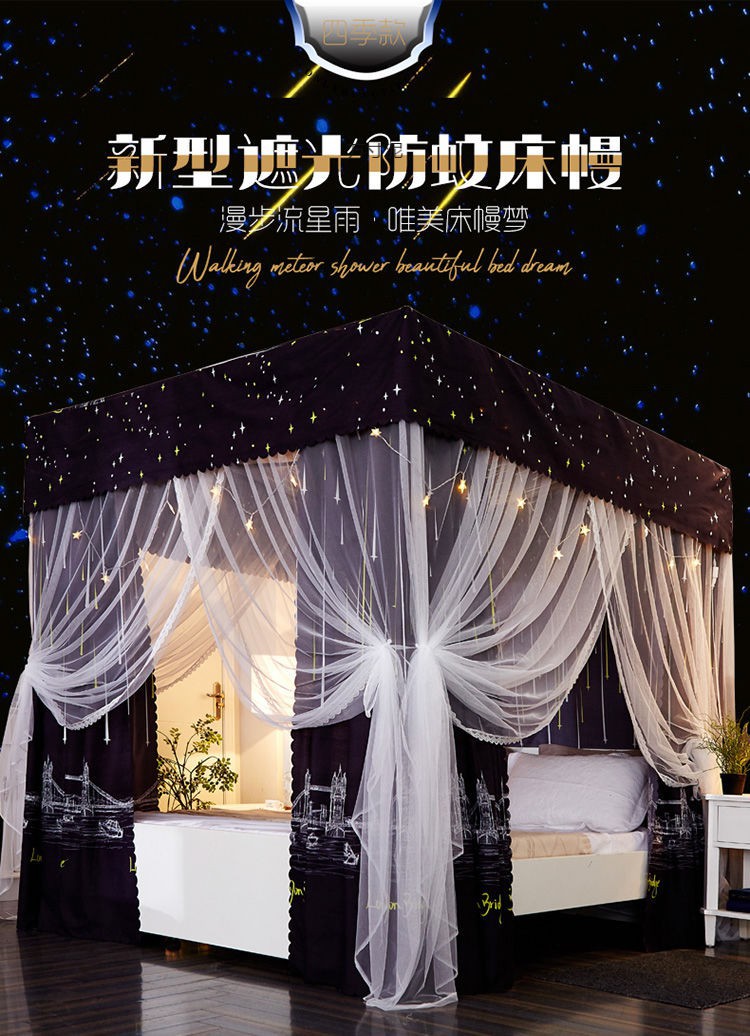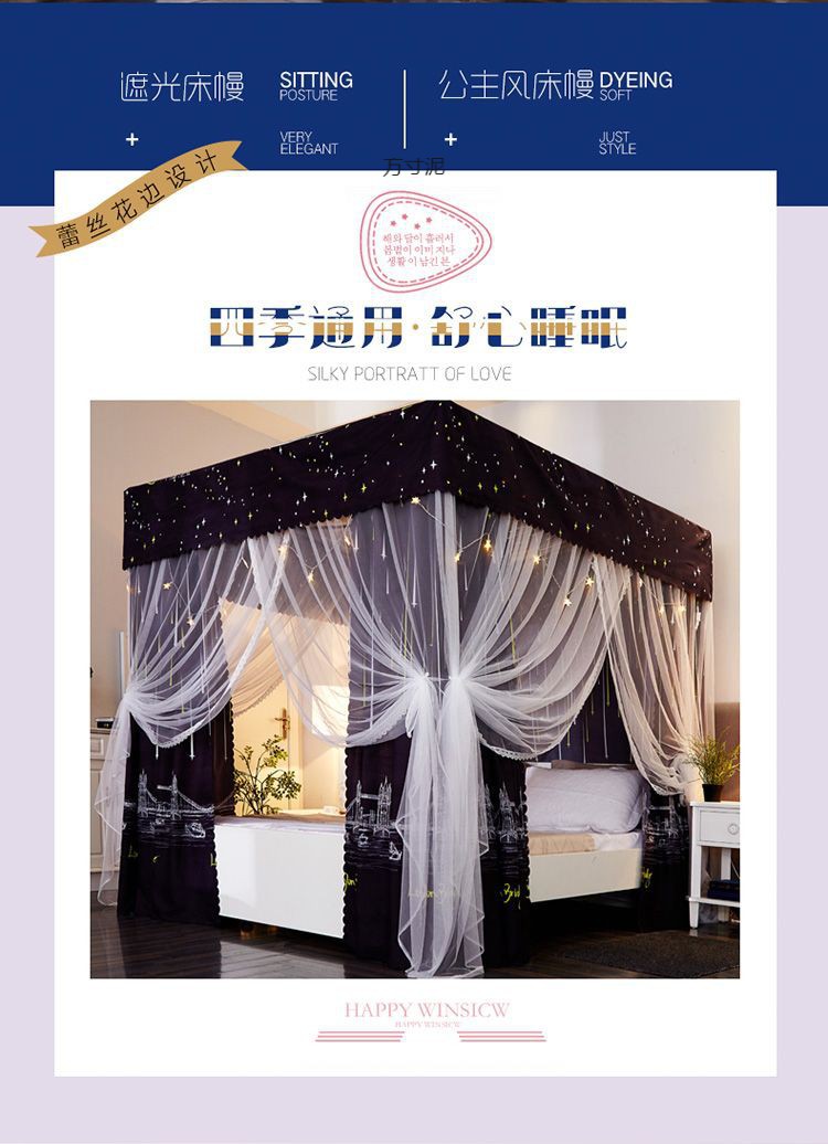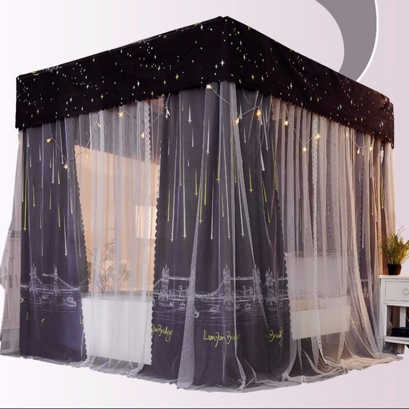 침대 커튼 음영 천 모기장 가정용 침대 커튼 침실 방진 탑 공주 바람 1.5 브래킷 통합 1.8 미터 도매스토어 가기