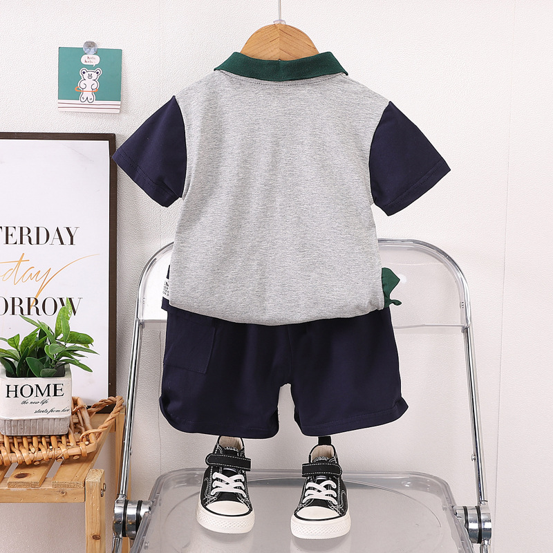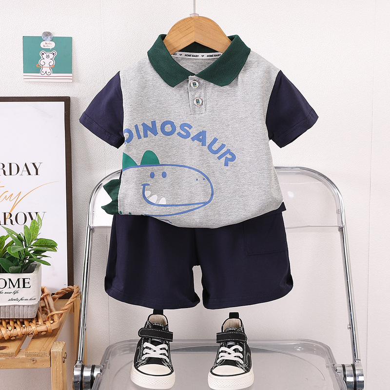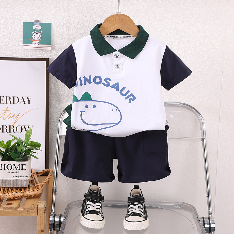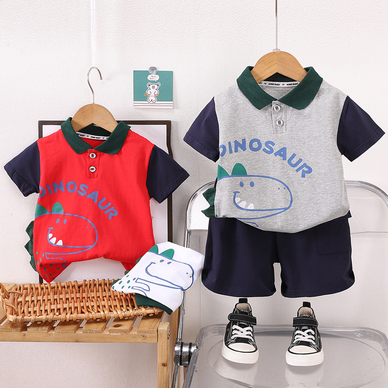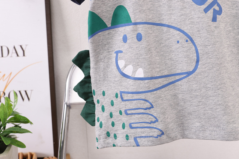 대외 무역 소년 세트 여름 새로운 서양 스타일 멋진 잘 생긴 아기 인터넷 인기있는 유행 편지 공룡 레이저 짧은 소매 세트