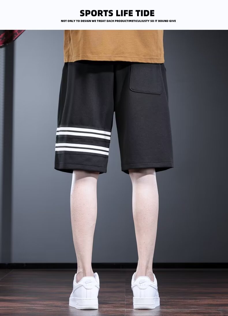 플러스 사이즈 유행 브랜드 간단한 무거운 느슨한 대비 컬러 스티칭 캐주얼 스포츠 반바지 남성 아메리칸 스타일 하이 스트리트 빈티지 바지스토어 가기