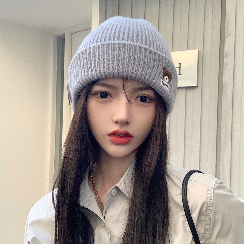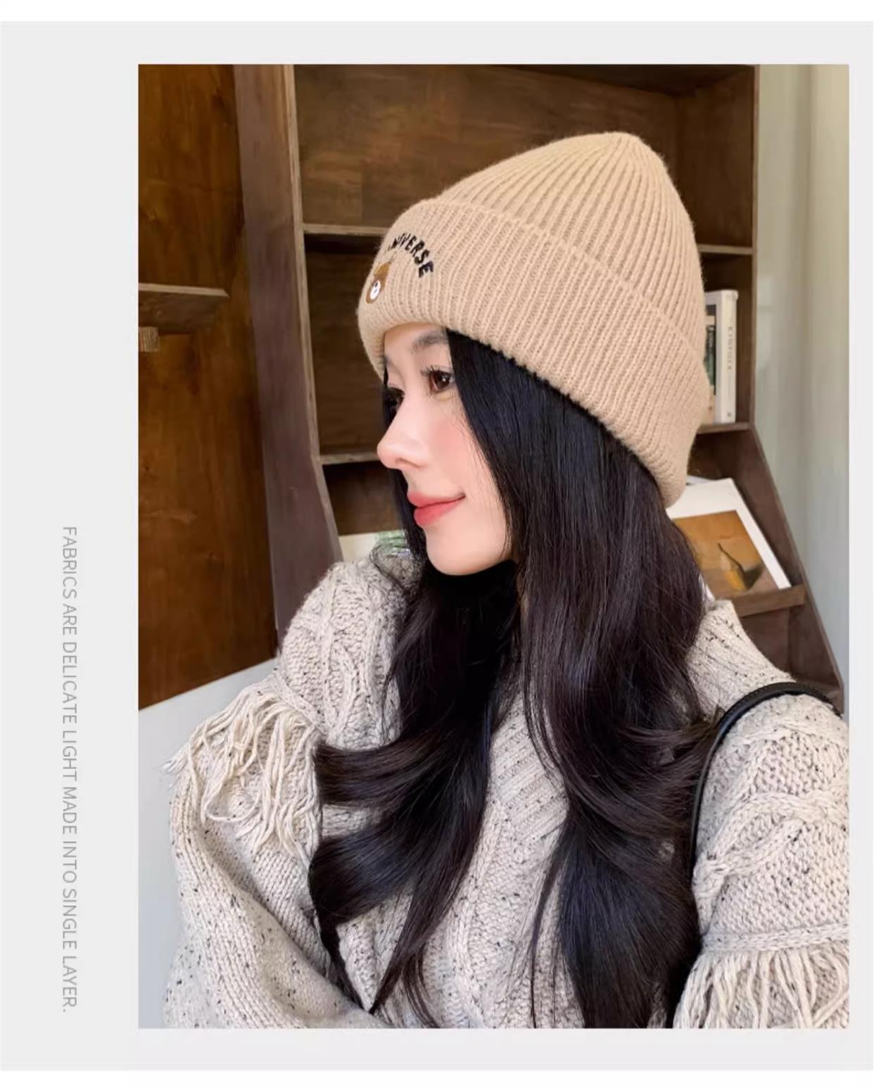 귀여운 곰 편지 니트 모자 어린이 가을 겨울 새 학생 올 매치 이어 보호 양모 모자 서양식 문모자 한국어스토어 가기