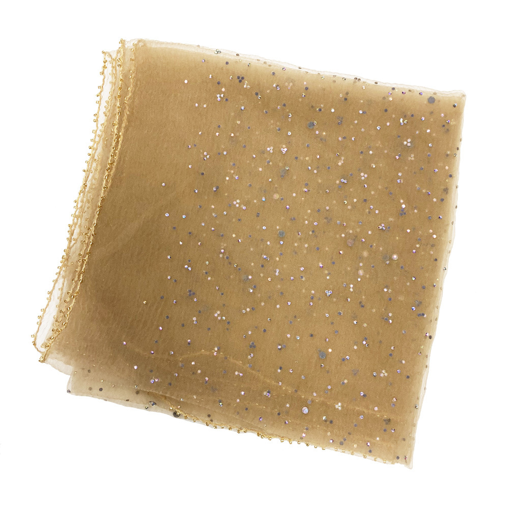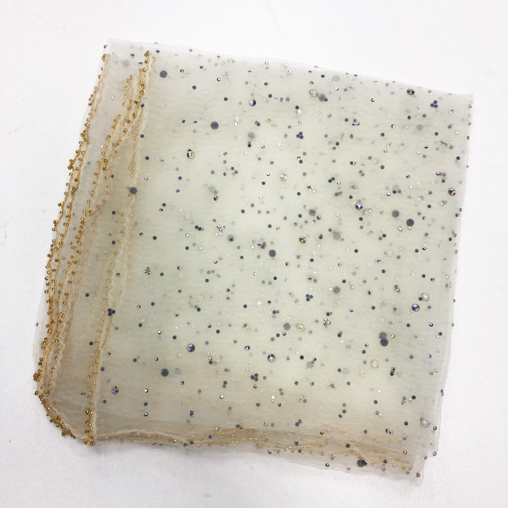 【商品材质】 丝巾烫钻+珠子边