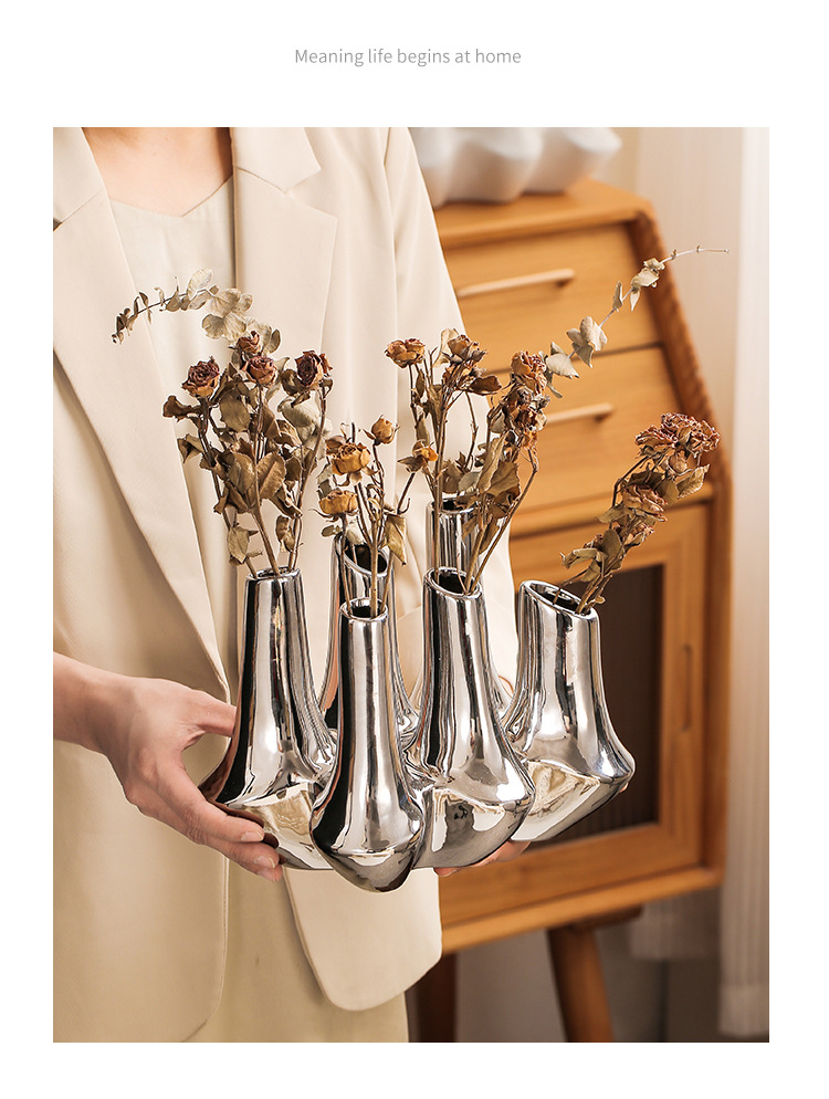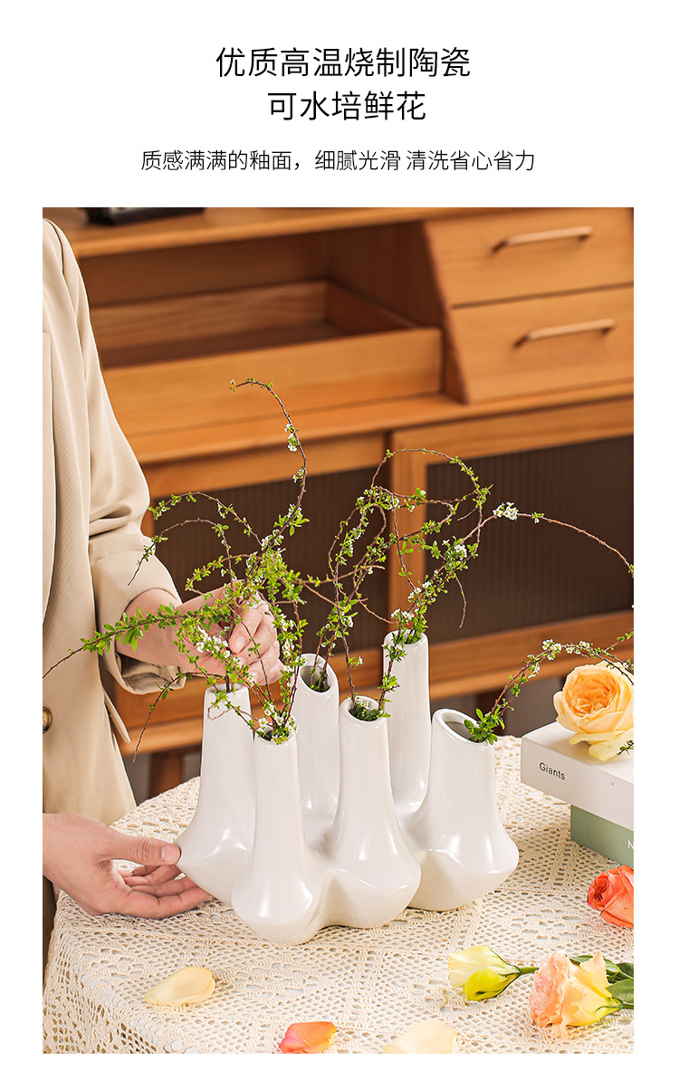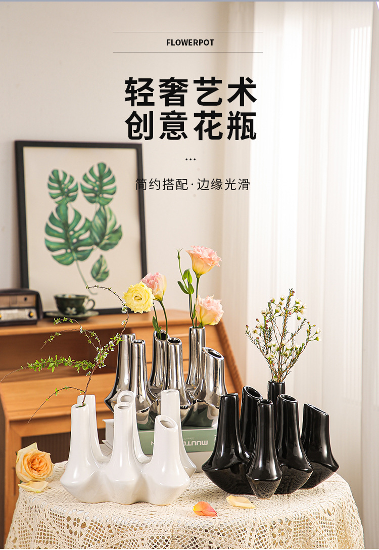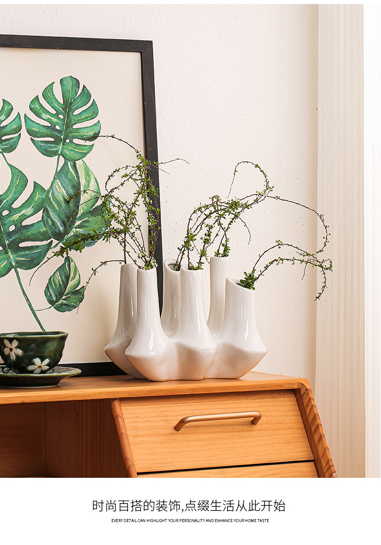 현대 창조적 인 수제 세라믹 추상 꽃 용기 홈스테이 모델 룸 보석 장식품 거실 입구 멀티 포트 꽃병스토어 가기