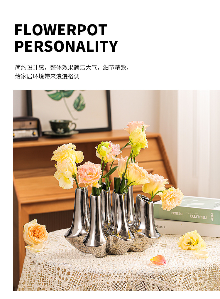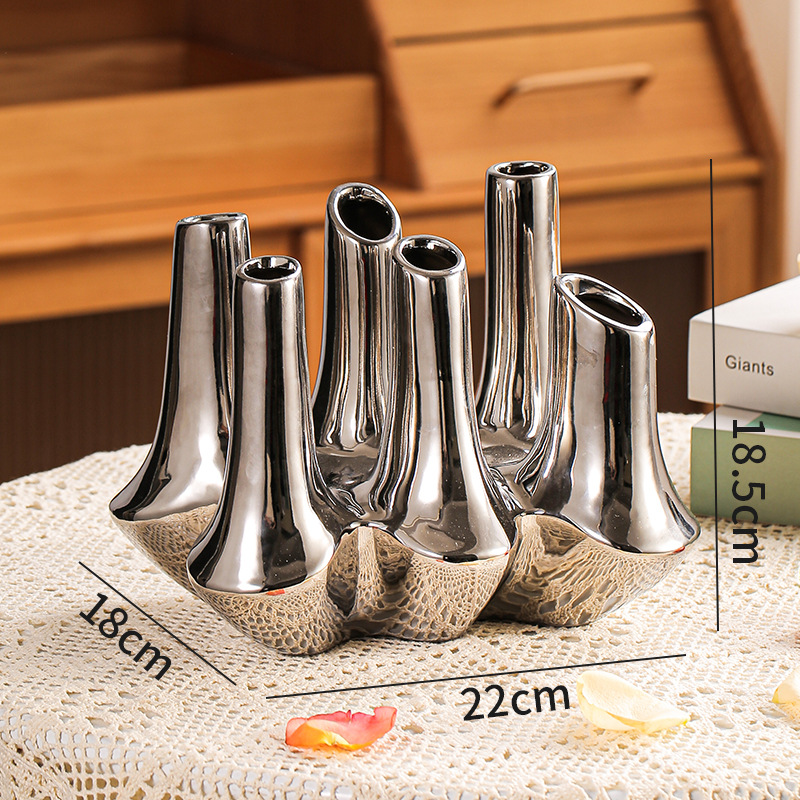 현대 창조적 인 수제 세라믹 추상 꽃 용기 홈스테이 모델 룸 보석 장식품 거실 입구 멀티 포트 꽃병