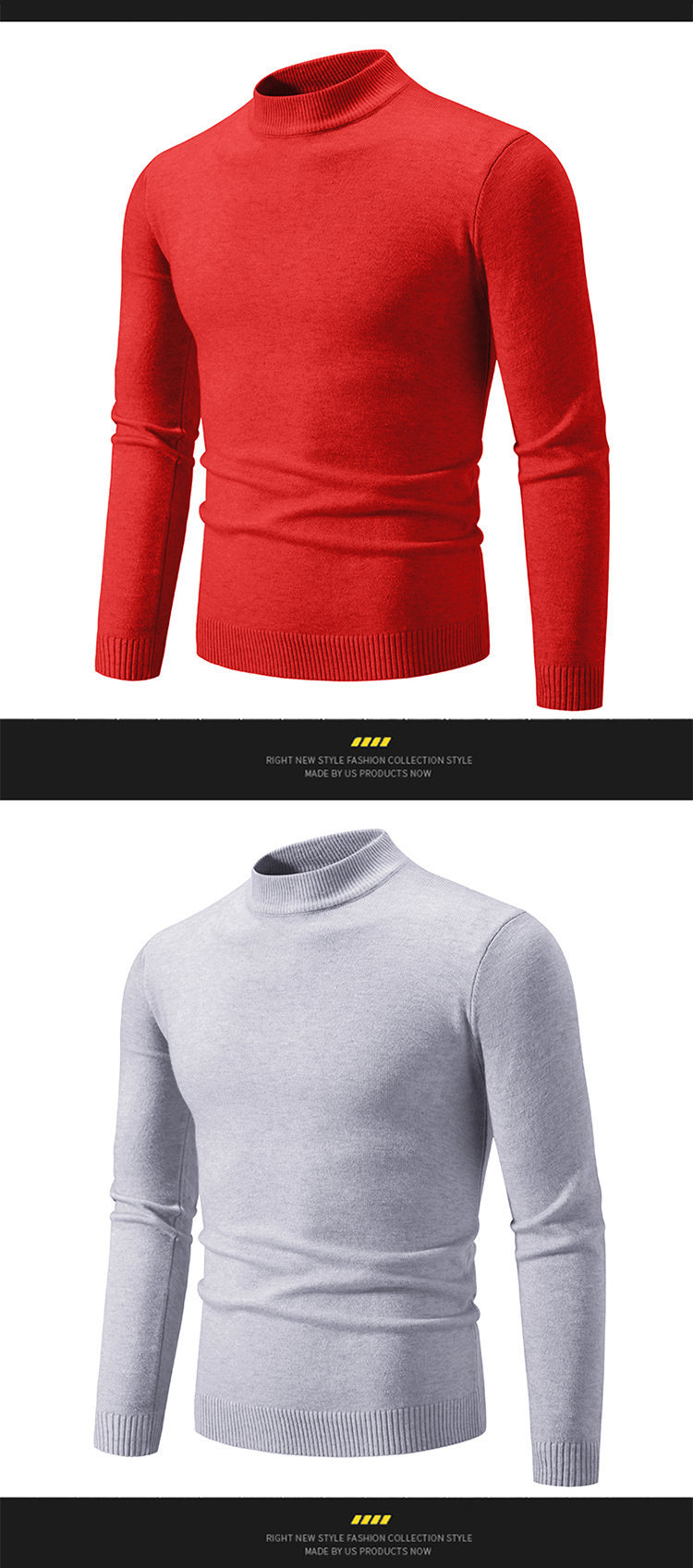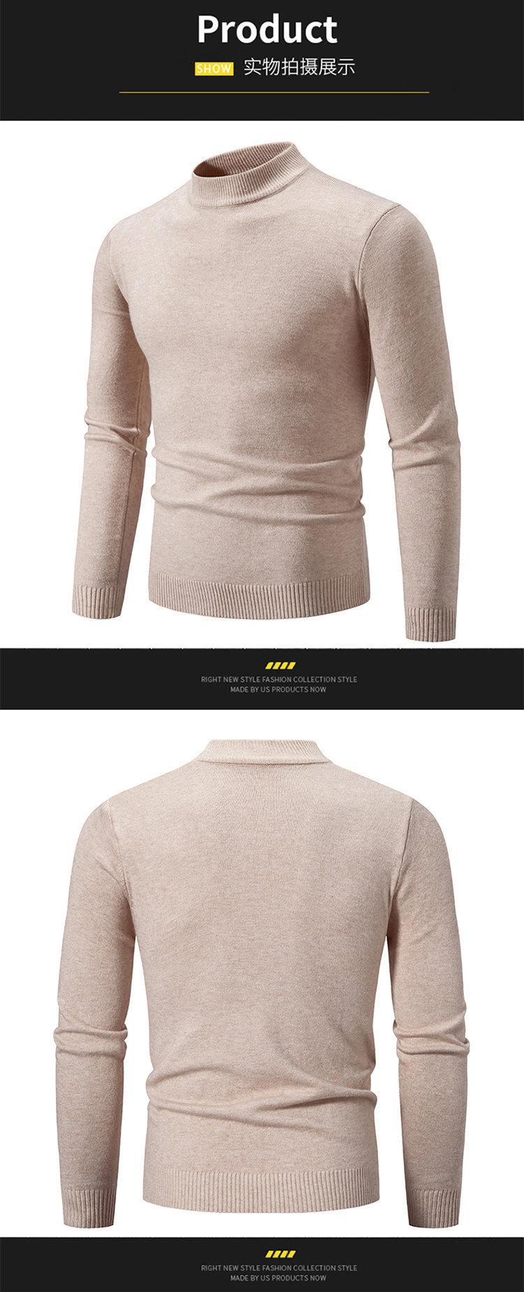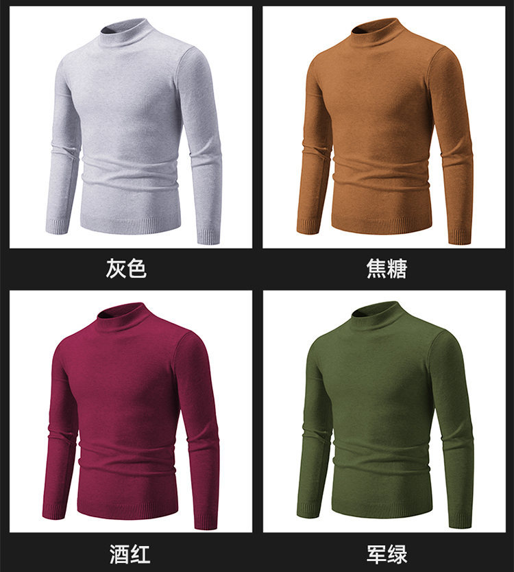 유럽과 미국의 국경 간 대외 무역 남자 가을과 겨울을위한 하프 터틀넥 스웨터 한국 스타일 슬림 핏 솔리드 컬러 풀오버 베이스 니트 스웨터