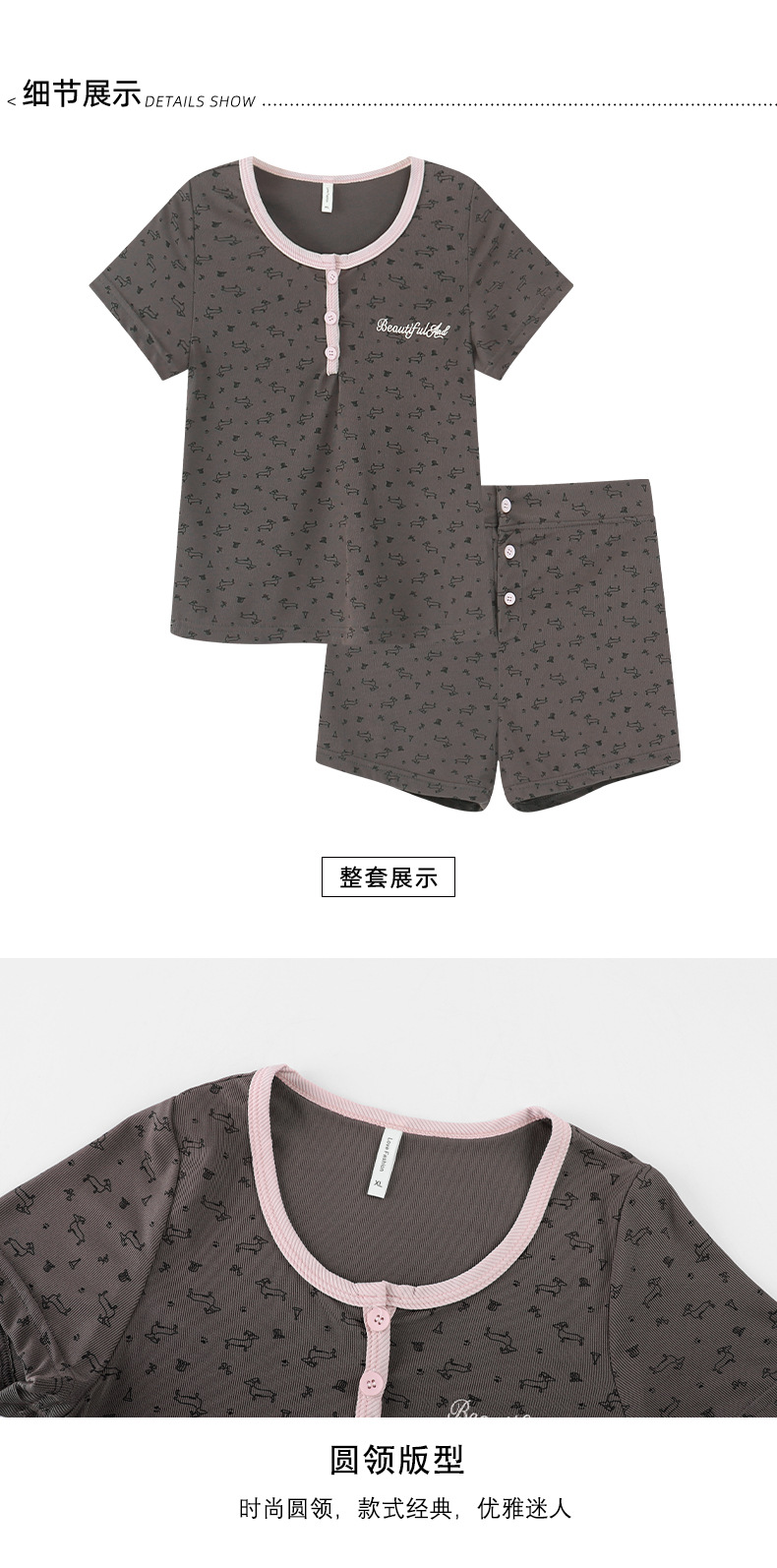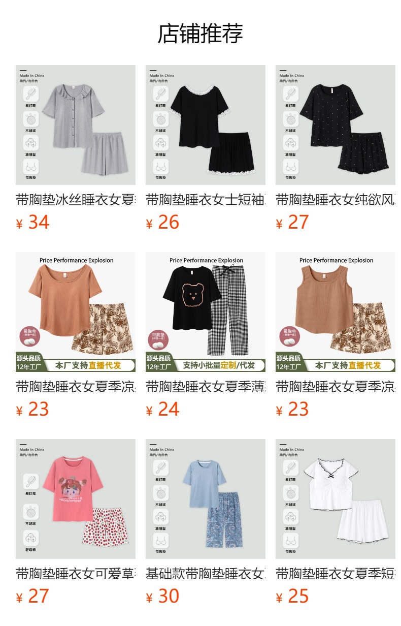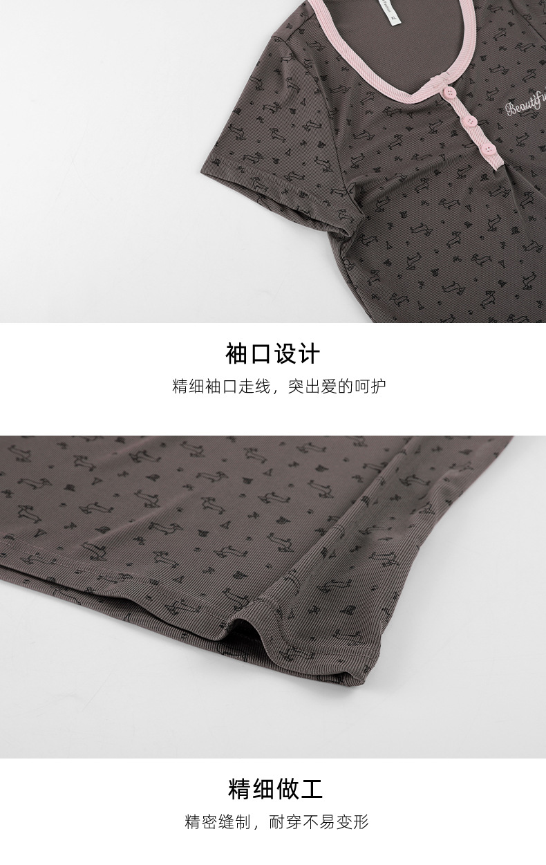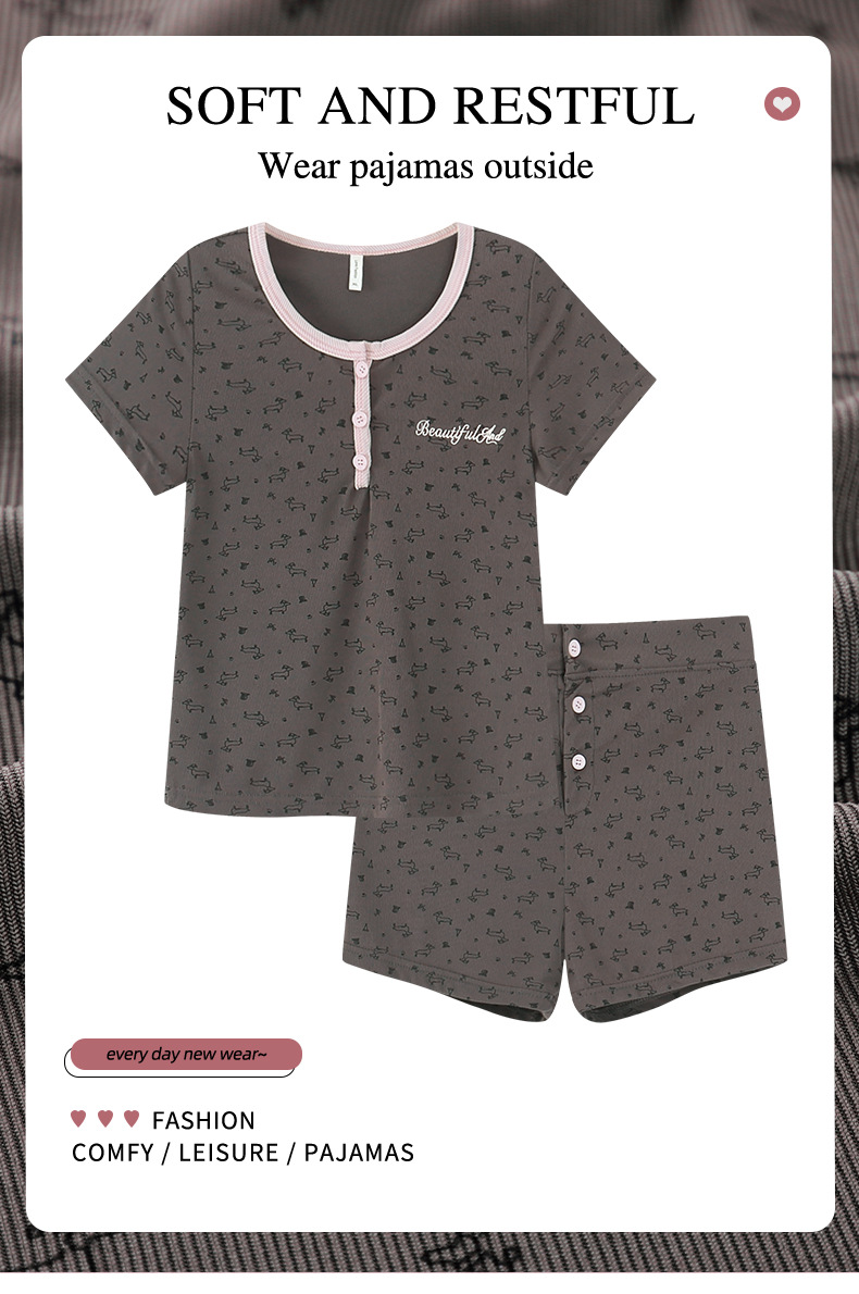 여름용 크림색 여성 잠옷 귀여운 프린트 반바지 세트 반팔 작은 학생용 얇은 외출복 홈웨어스토어 가기