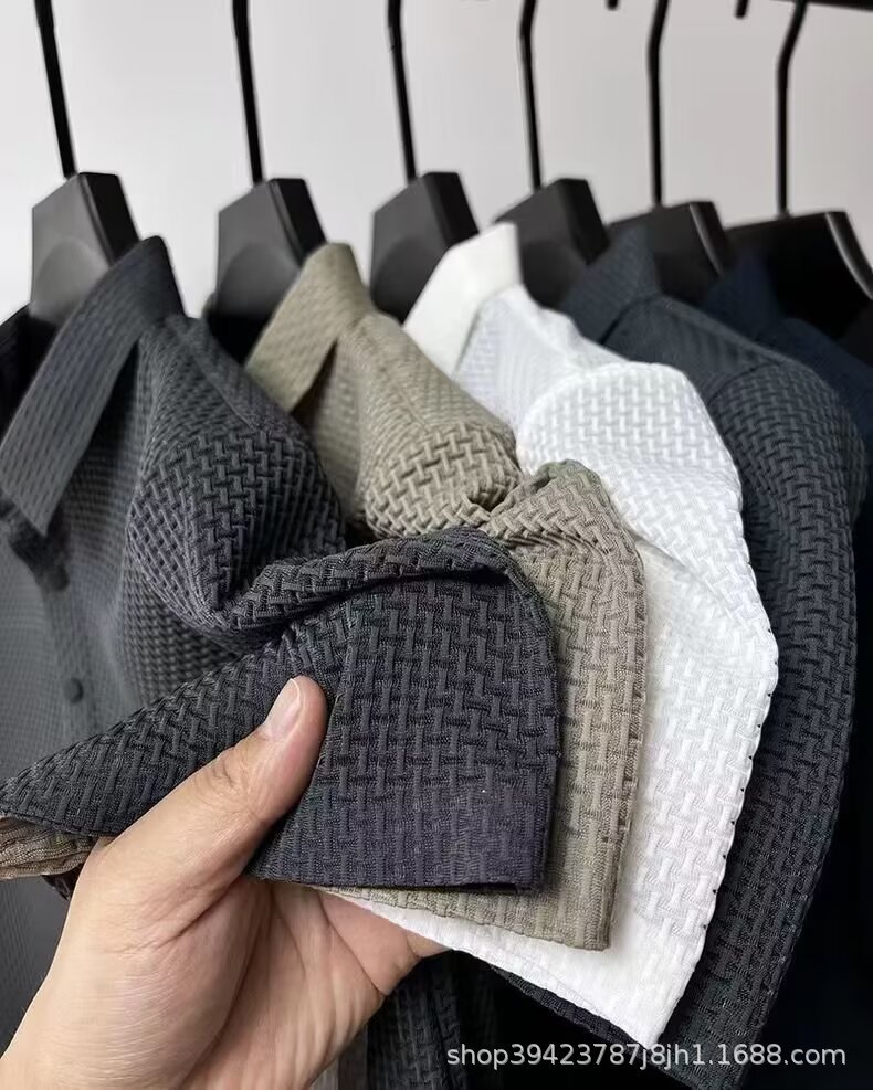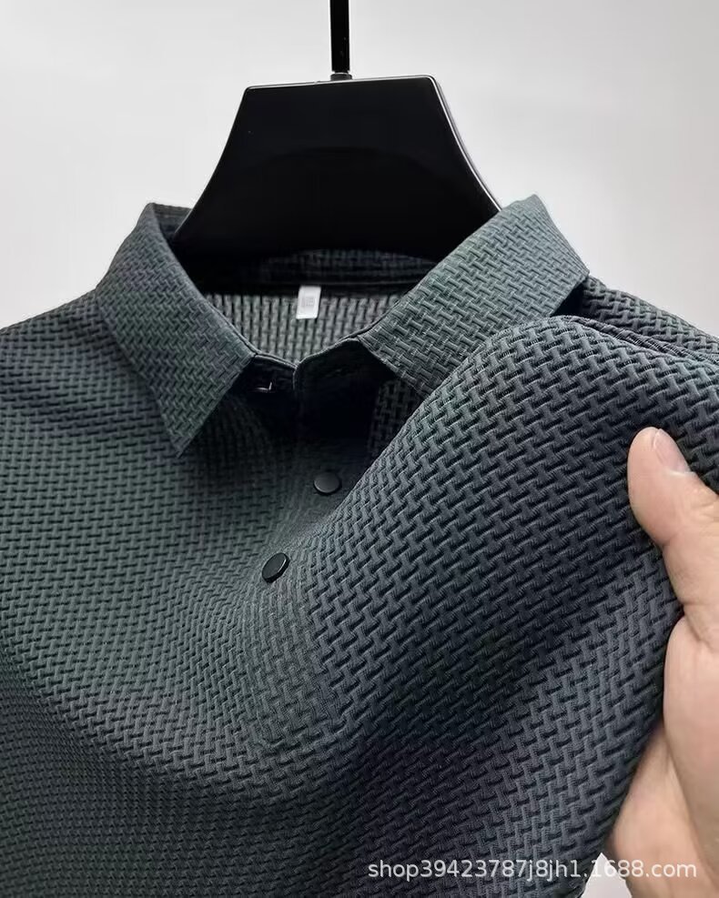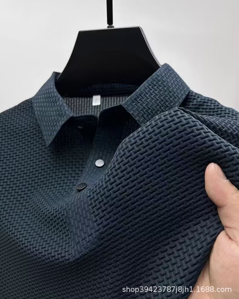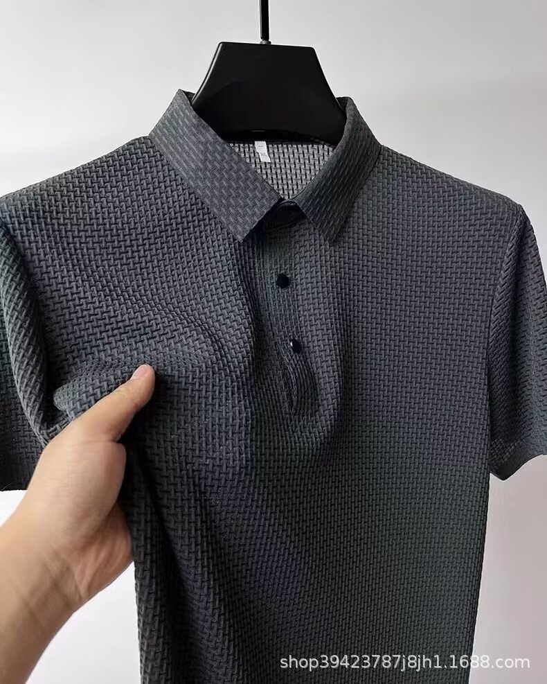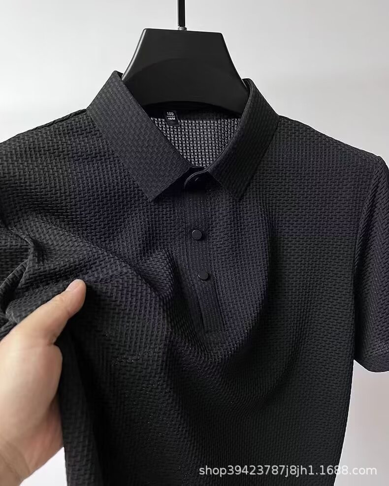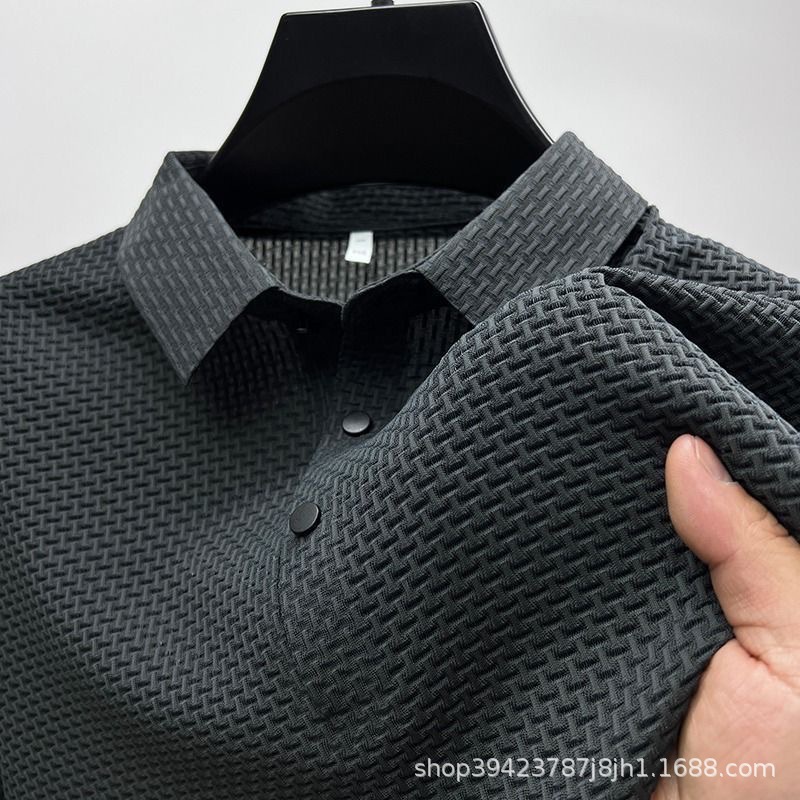 여름 아이스 실크 빠른 건조 폴로 셔츠 남자의 자카드 옷깃 반팔 티셔츠 하이 엔드 캐주얼 남성 드레이핑 탑