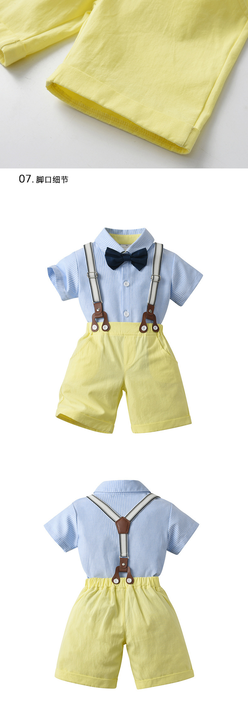 80码-90码-100码-110码-120码-130码   2024欧美童装批发夏季短袖两件套宝宝衣服儿童背带裤礼服男童套装