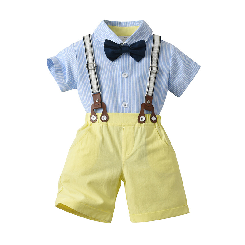 2024 유럽과 미국의 아동복 도매 여름 짧은 소매 투피스 아기 옷 어린이 멜빵 원피스 소년 세트
