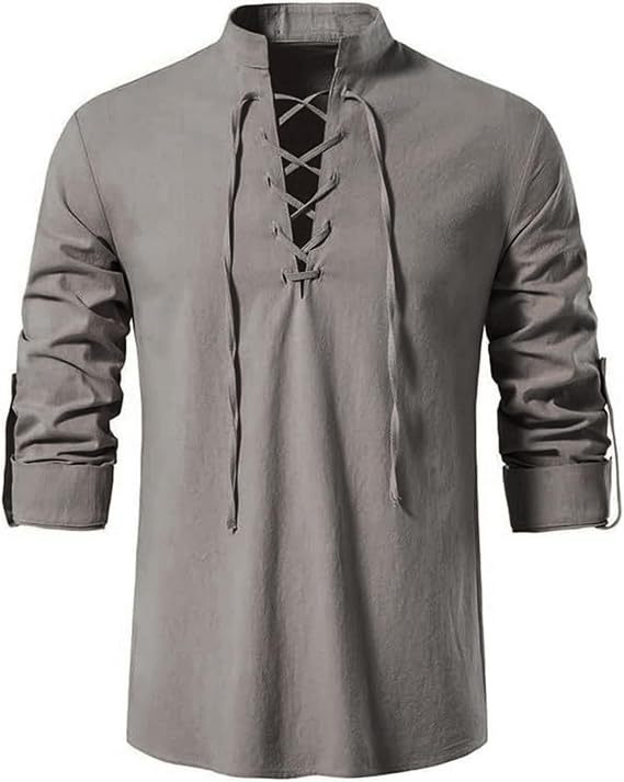 2025 대외 무역 신작 아마존 남성 스탠드 칼라 긴팔 셔츠 코튼 린넨 헨리 셔츠 히피 캐주얼 비치 셔츠스토어 가기