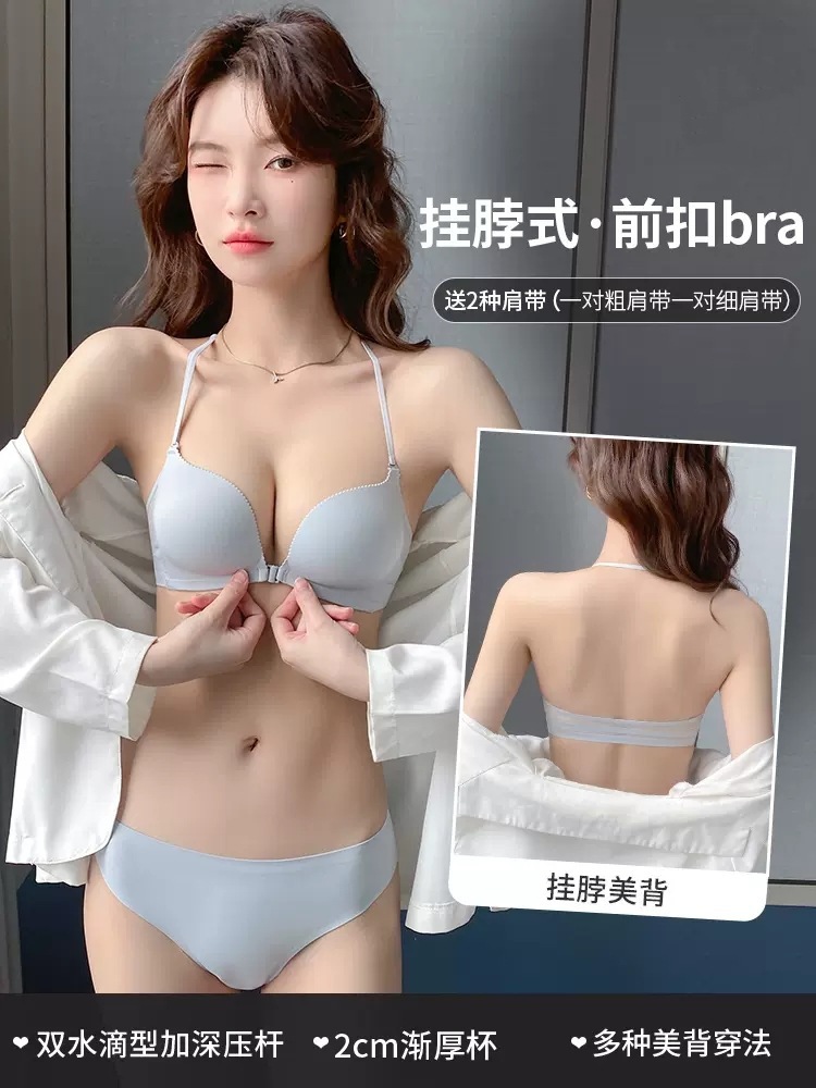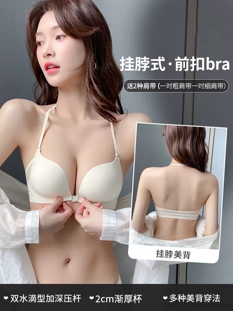 교수형 넥 백 속옷 2023 새로운 핫 스타일 여성의 작은 가슴, 대형 대조 액세서리 가슴 없음 마크 프론트 버클 브라 여름 표시