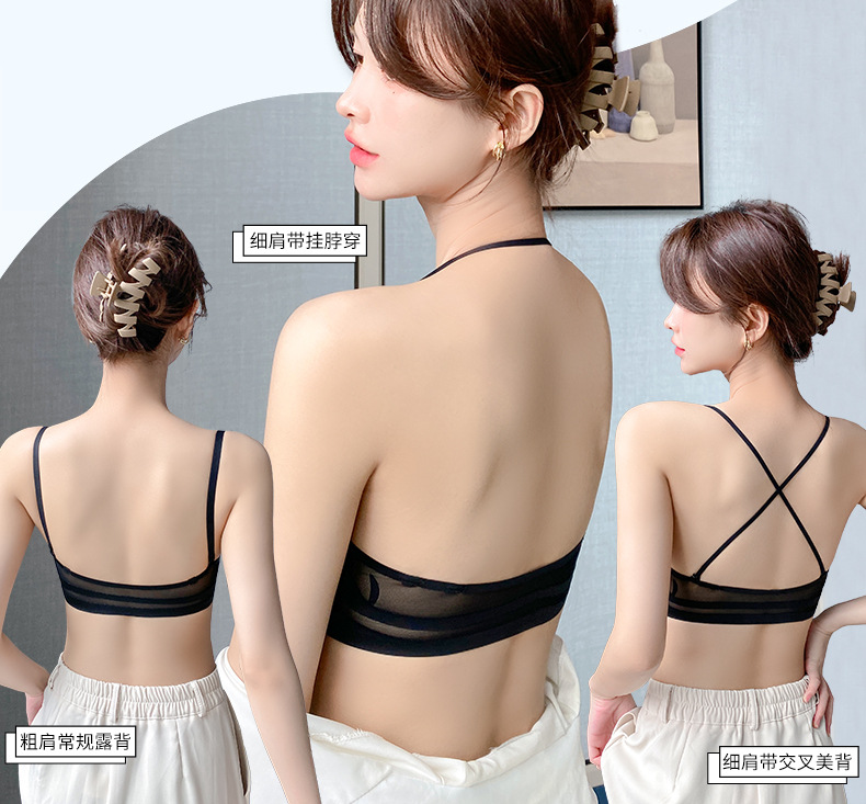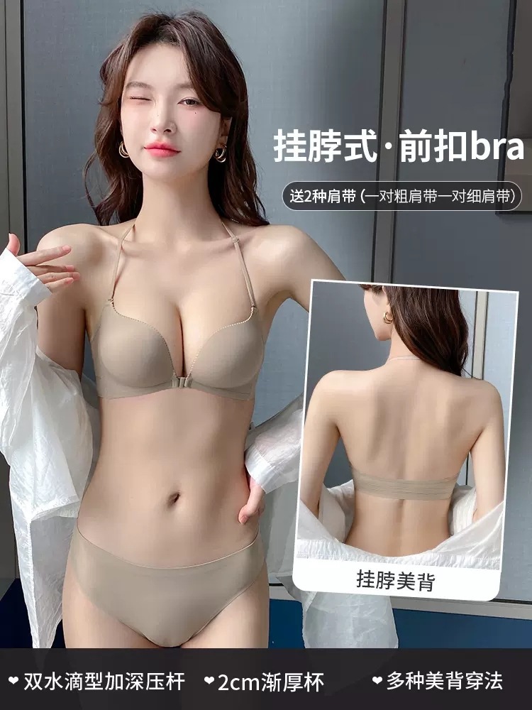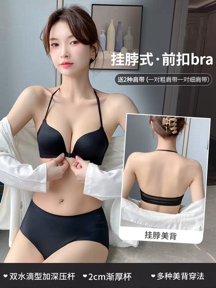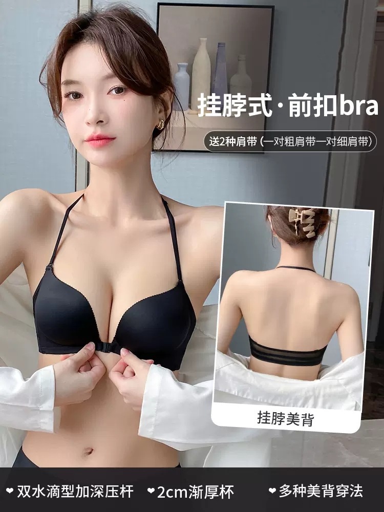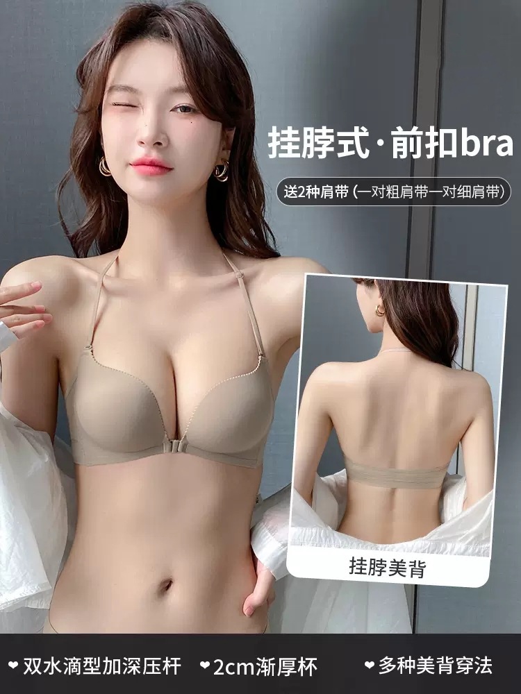 교수형 넥 백 속옷 2023 새로운 핫 스타일 여성의 작은 가슴, 대형 대조 액세서리 가슴 없음 마크 프론트 버클 브라 여름 표시스토어 가기