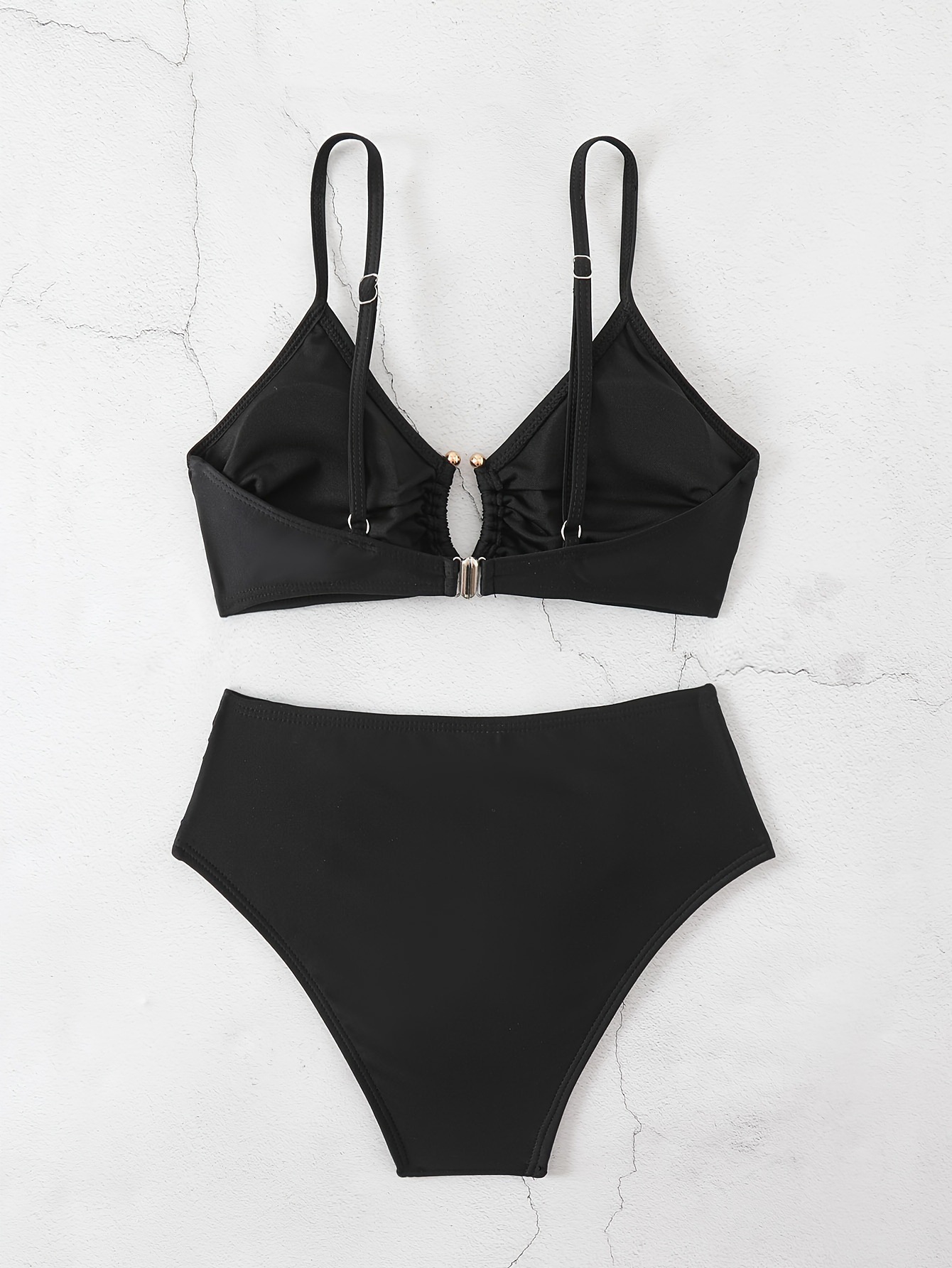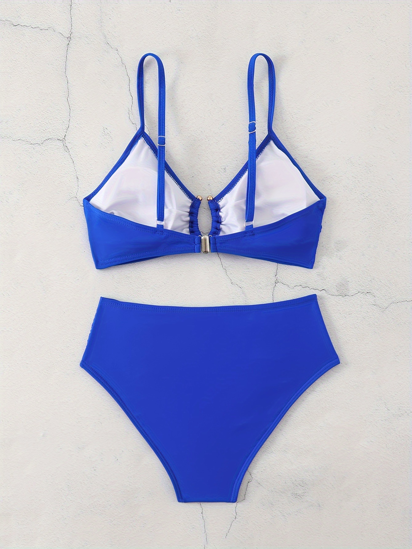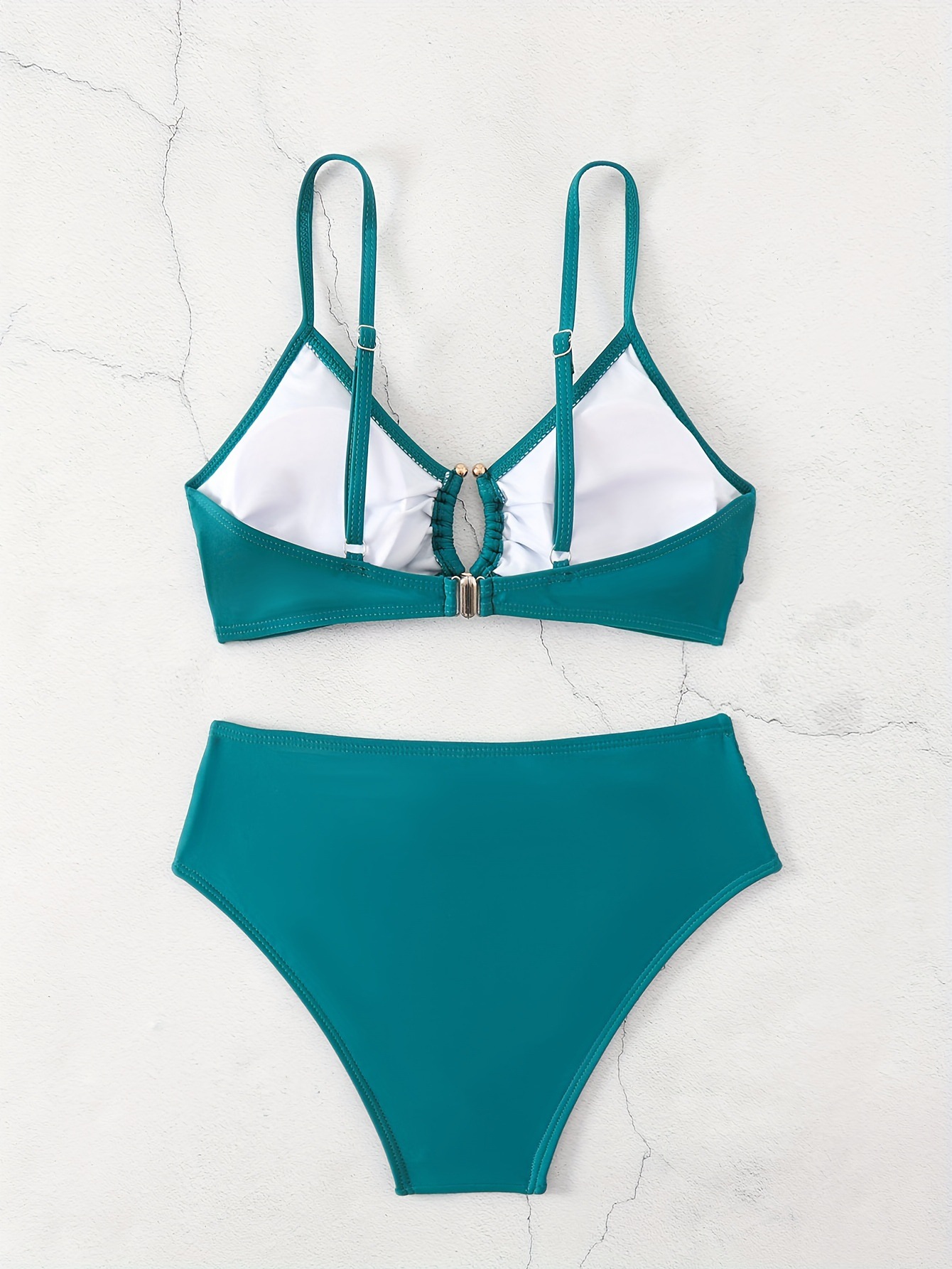 유럽과 미국의 비키니 수영복 여성 국경 간 대외 무역 섹시한 뜨거운 소녀 하이 웨이스트 솔리드 컬러 수영복 스플릿 수영복