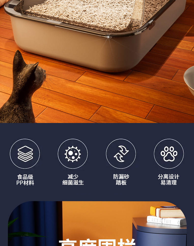 고양이 쓰레기 상자 대형 높은 울타리 안티 스플래시 엑스트라 대형 고양이 화장실 청소 애완 동물 용품 공장 직접 재고스토어 가기