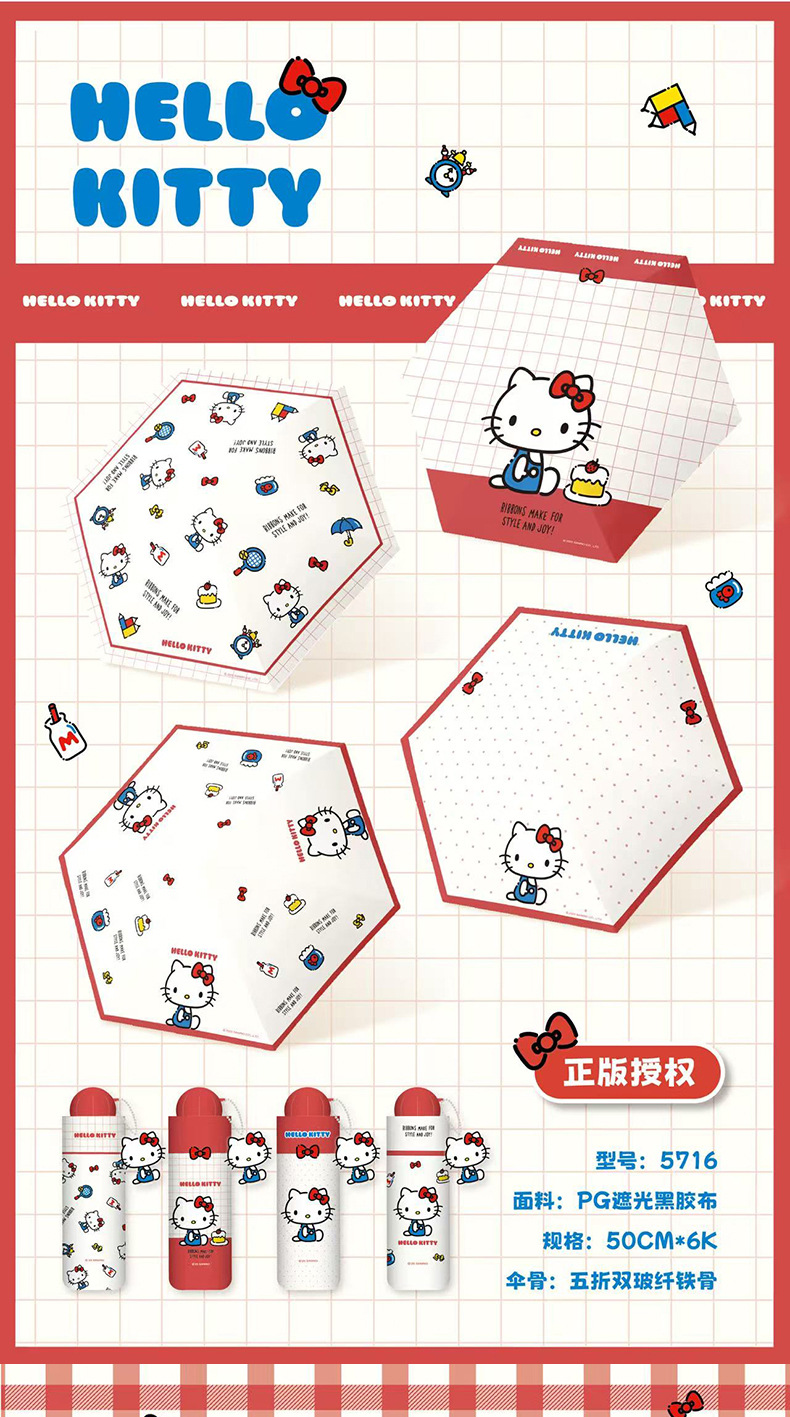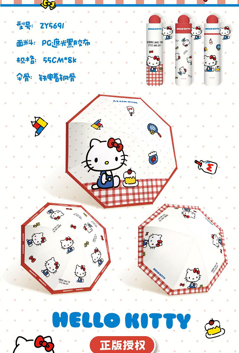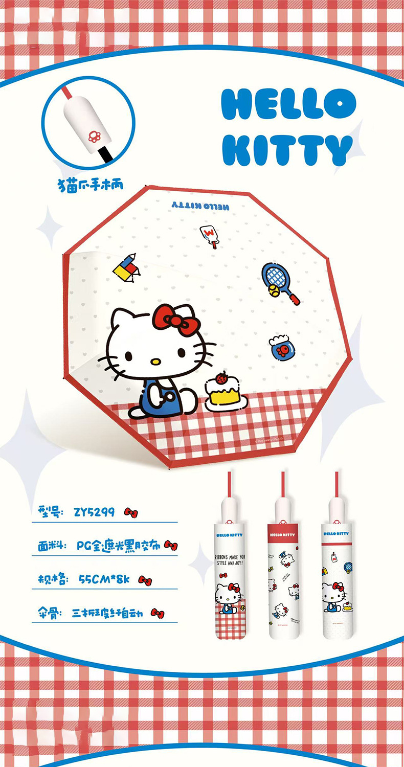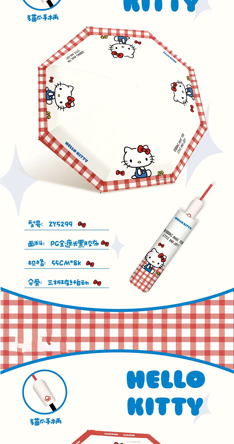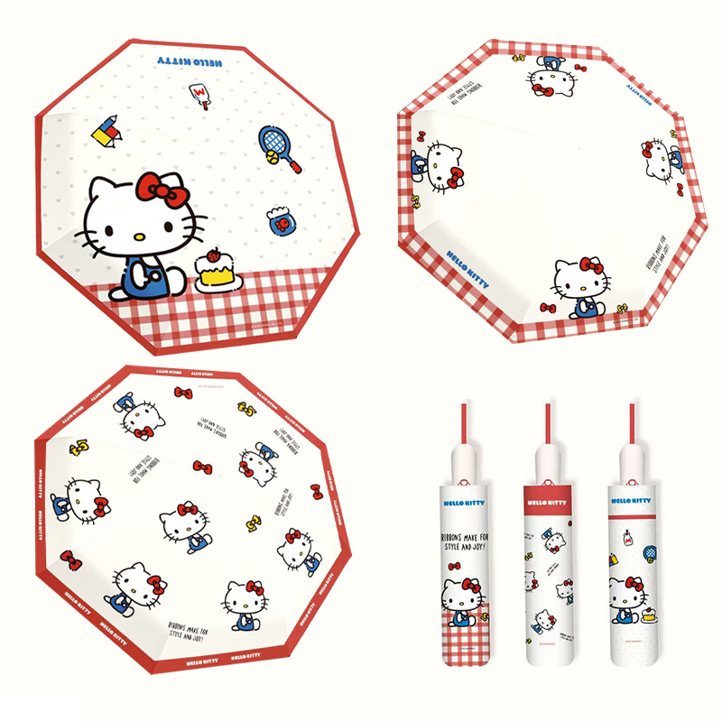 Kitty 정품 공인 디지털 인쇄 50% off 수동 외반 우산 비오는 우산 여성용 비닐 자외선 차단 UV 우산