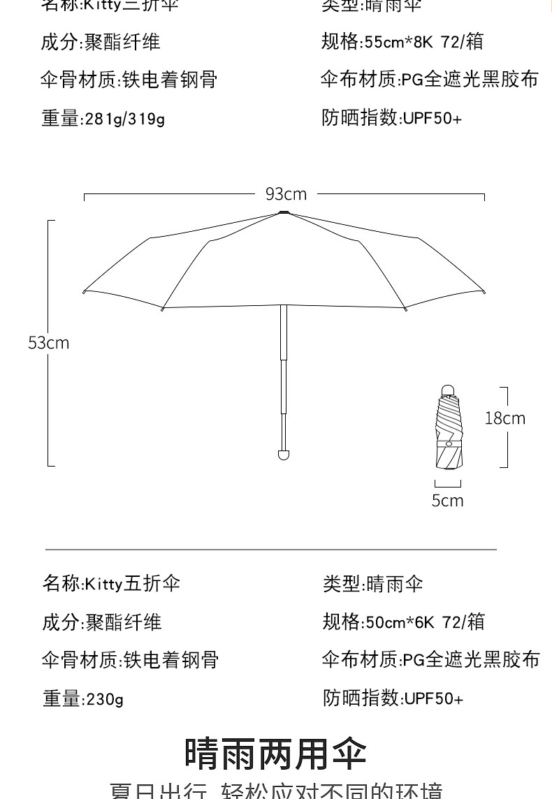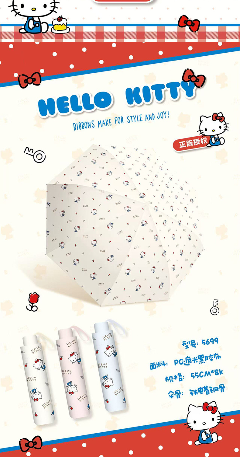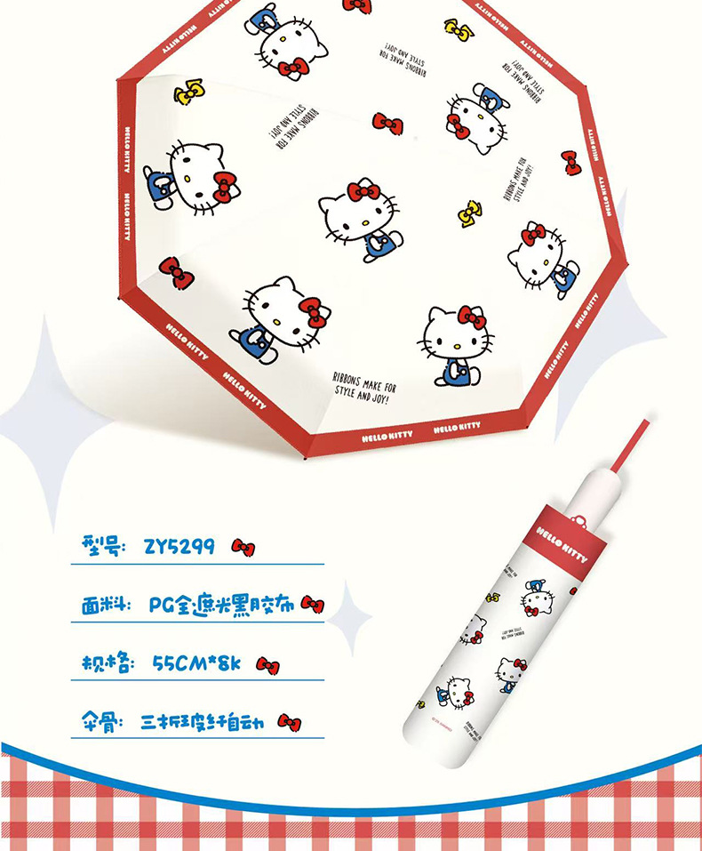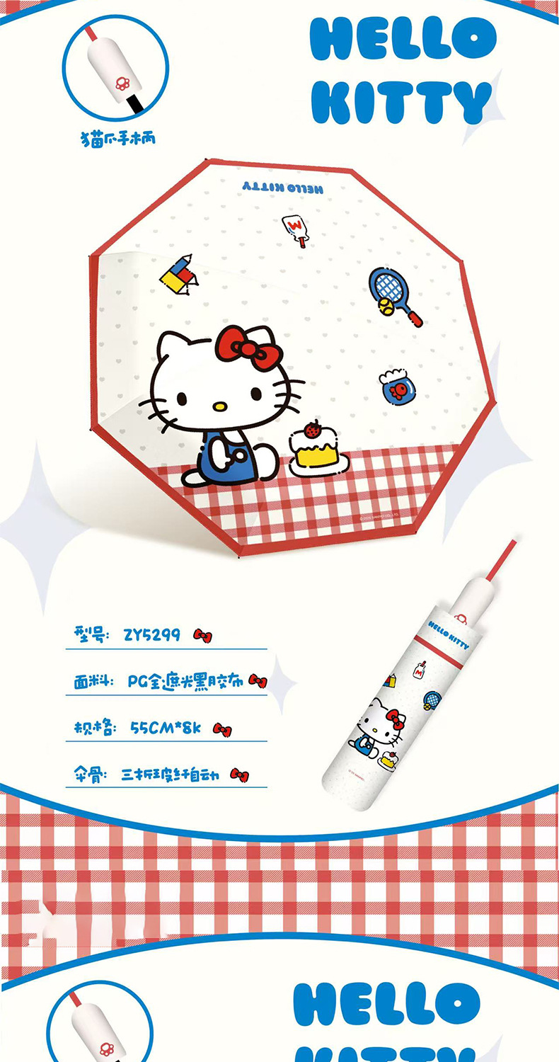 Kitty 정품 공인 디지털 인쇄 50% off 수동 외반 우산 비오는 우산 여성용 비닐 자외선 차단 UV 우산