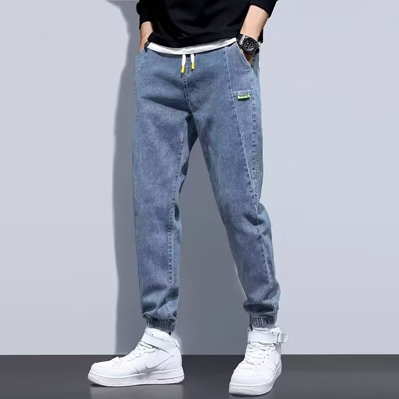 청바지 남자의 2022 새로운 도착 봄과 가을 유행 브랜드 툴링 느슨한 다리 하렘 유행 남성 캐주얼 바지스토어 가기