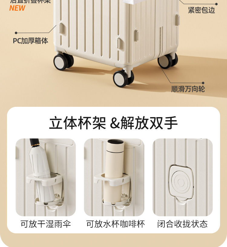 컵 홀더 수하물 케이스 남성과 여성의 내구성있는 트롤리 케이스 대용량 24 인치 유니버설 휠 가방 강력한 암호 상자