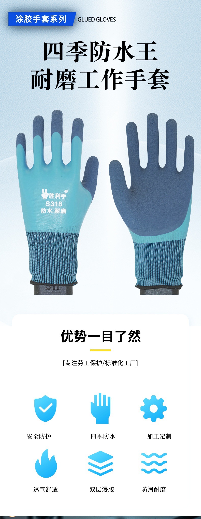 사계절 방수 장갑 13 핀 라텍스 폼 노동 보호 장갑 얇은 내마모성 통기성 방수 미끄럼 방지 장갑스토어 가기