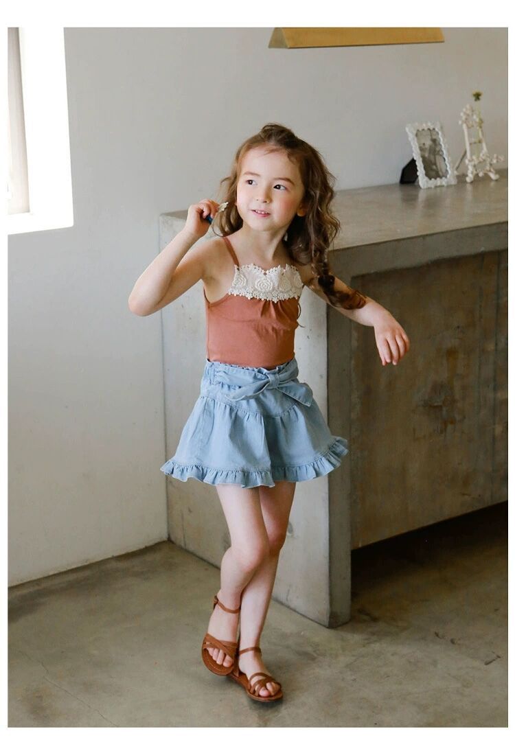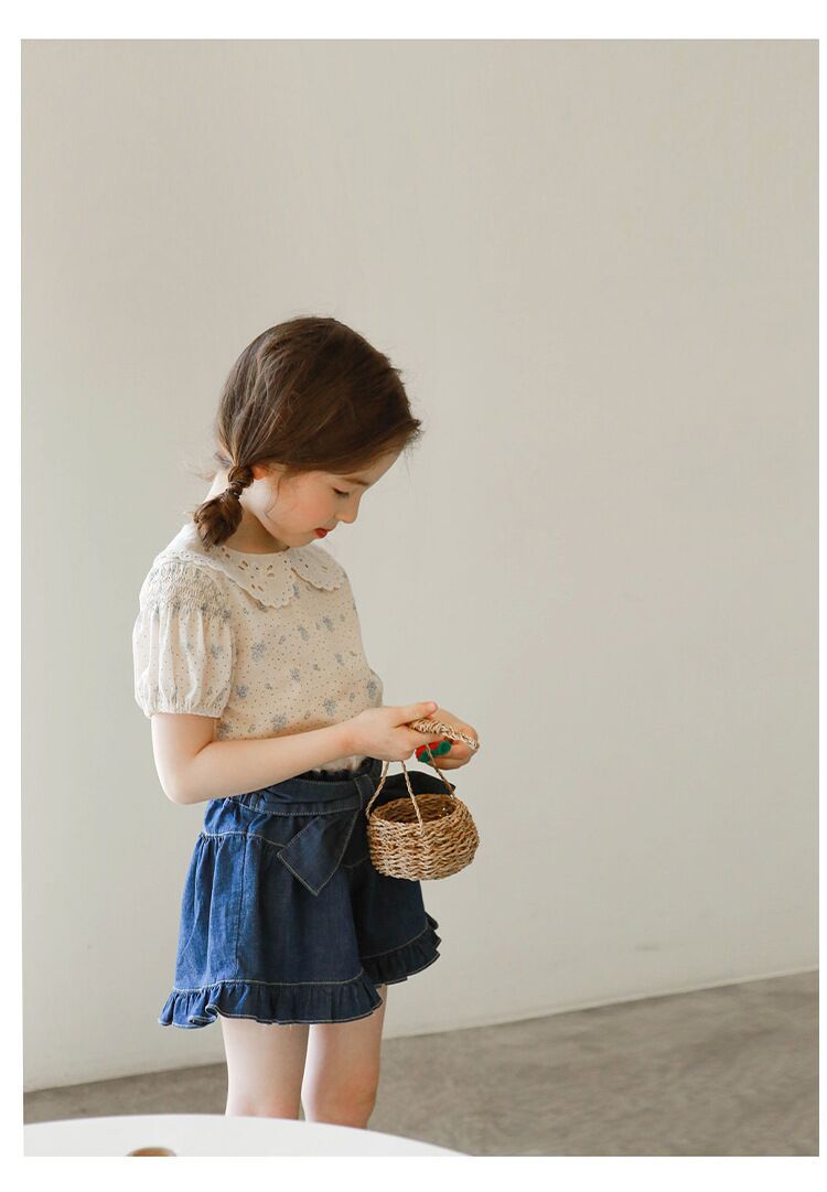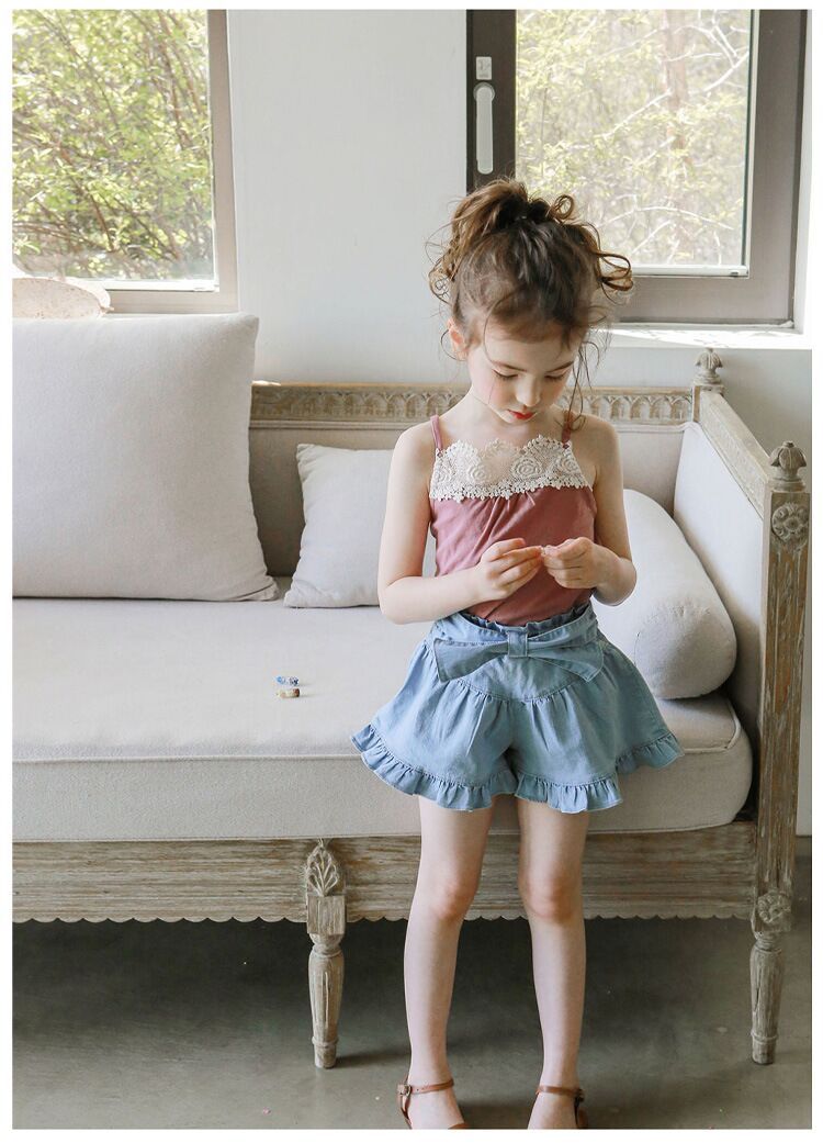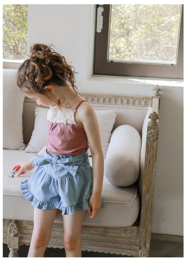 재고 2024 여름 여자 데님 반바지 달콤한 큰 활 공주 아기 culottes Ruffled 치마스토어 가기