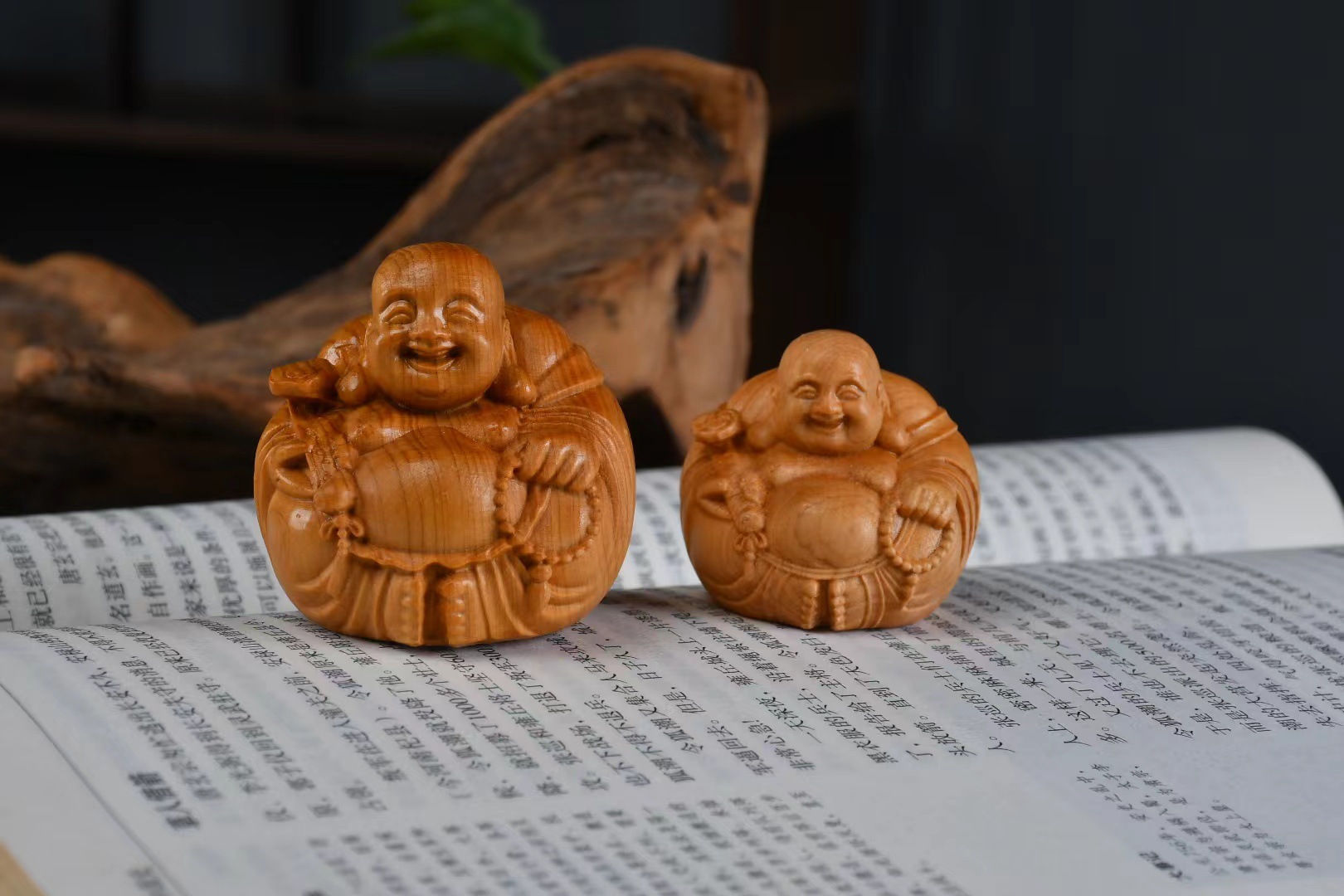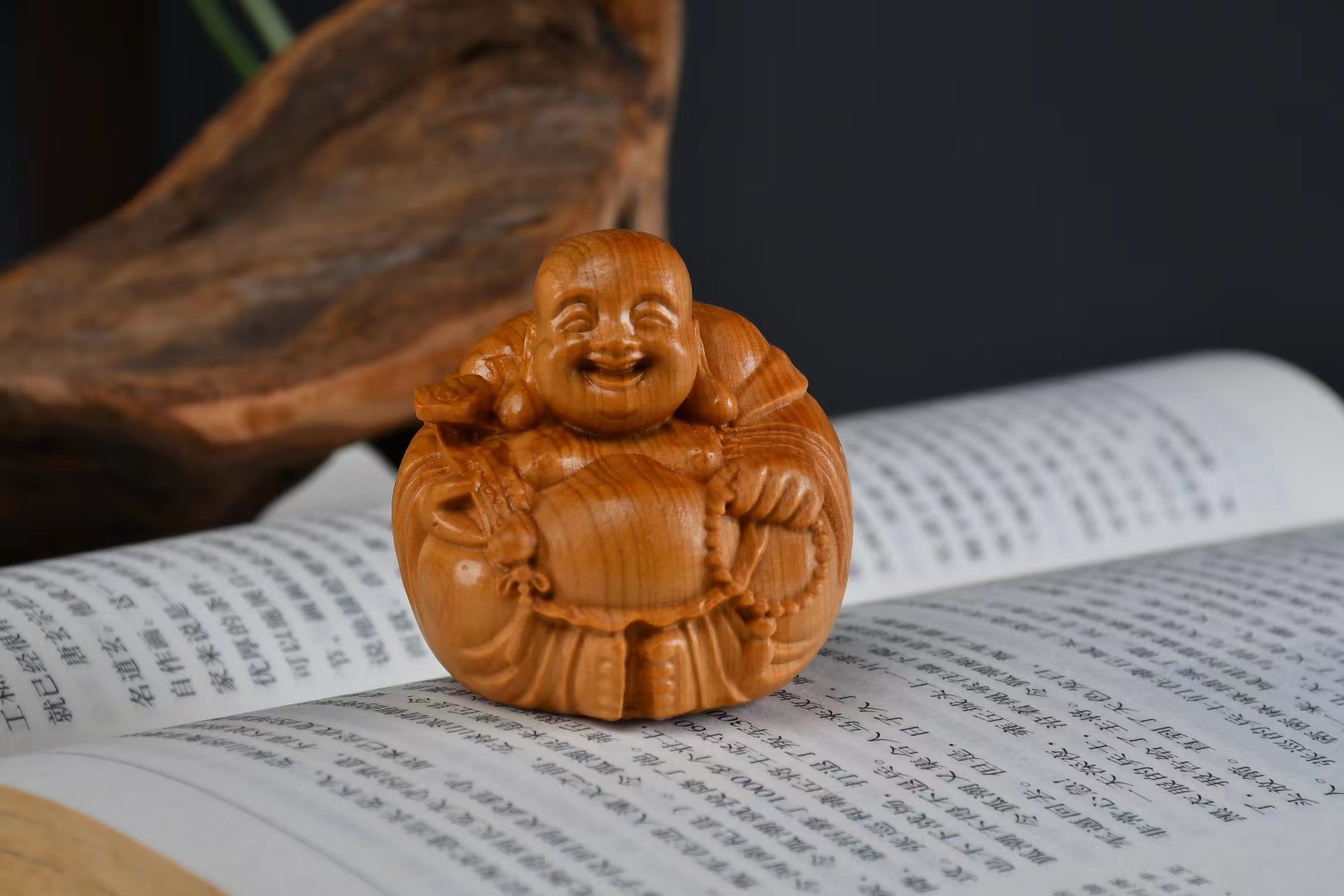 Taihang Yabai 목재 조각 장식품 부드러운 손잡이 Maitreya 데스크탑 장식품 남성 캐리 온 플레이 플레이트 플레이 작업