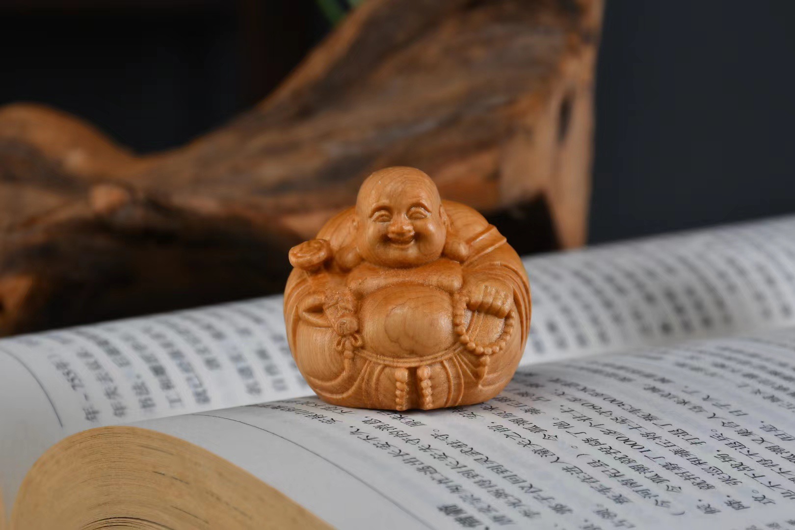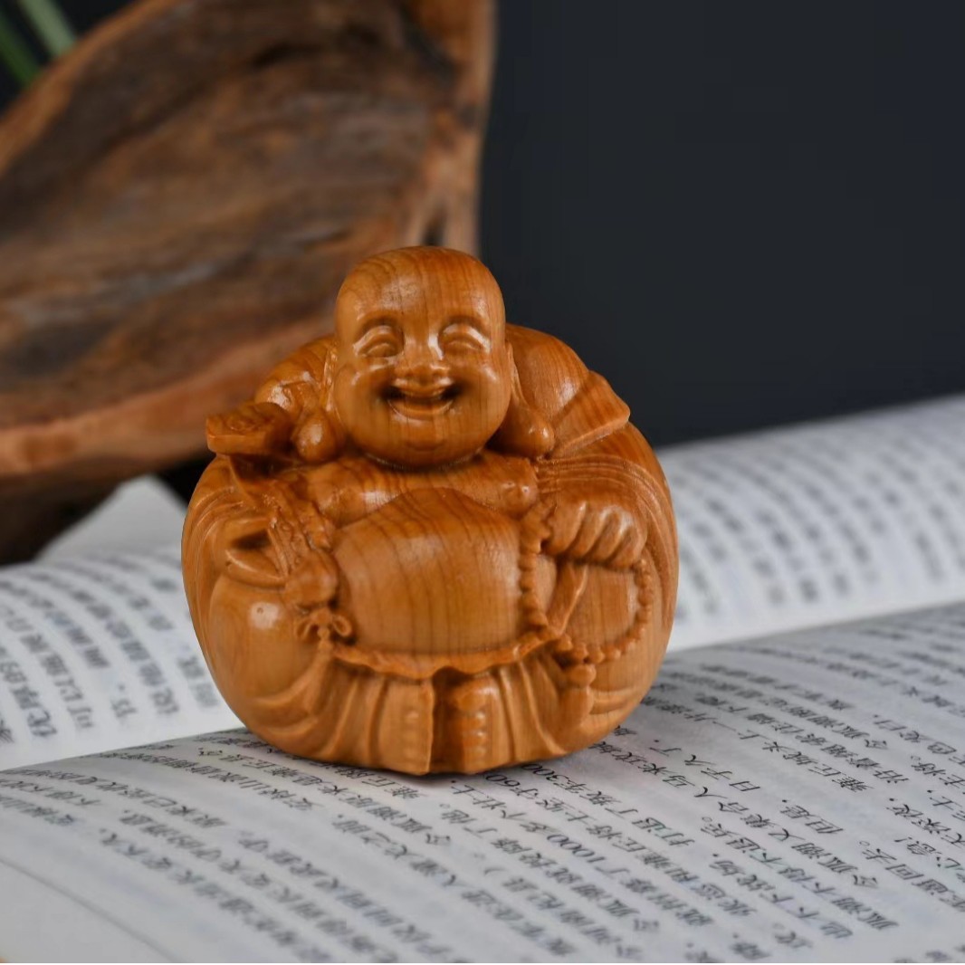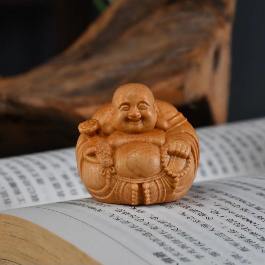 Taihang Yabai 목재 조각 장식품 부드러운 손잡이 Maitreya 데스크탑 장식품 남성 캐리 온 플레이 플레이트 플레이 작업스토어 가기